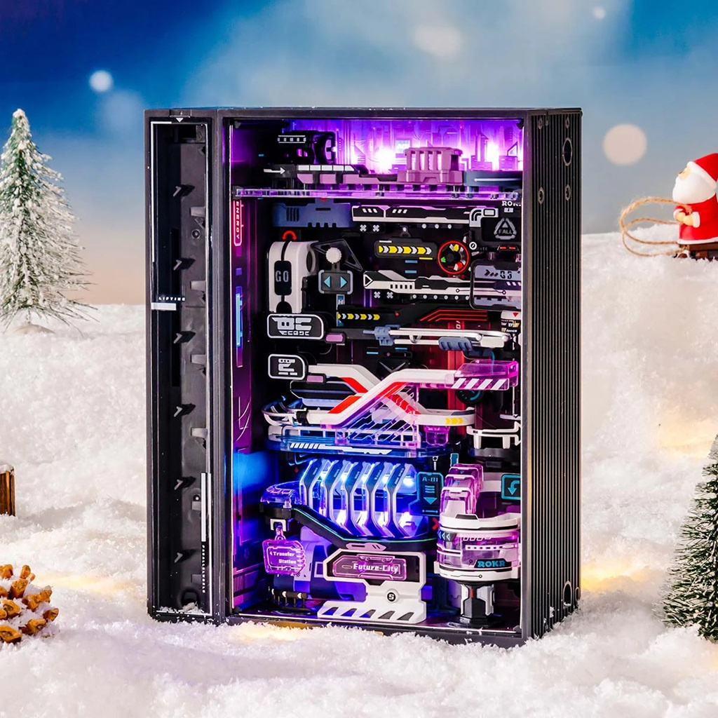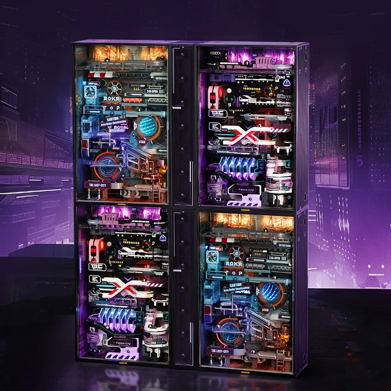 Kuličková dráha s automatickým výtahem je dlouhá 174 cm a má dynamické neónové osvětlení. Toto miniaturní panoráma rušného velkoměsta je navrženo do nejmenších detailů s důrazem na vizuální stránku. Kuličky putují dráhou v kyberpunkovém stylu zběsilou rychlostí v kulisách sci-fi města mezi výškovými budovami, potrubím a továrnami provázené záblesky neonů. Tlačítkem změníte osvětlení – užijte si rušné velkoměsto nebo pestrý noční život. Tento modul kuličkové dráhy je propojitelný s dalšími moduly jak vertikálně, tak horizontálně. Propojte s modulem 3D mechanická skládačka kuličkové dráhy Město minulosti MR01S pro maximální efekt. Je možné propojit až 4 moduly. K napájení slouží USB-C kabel (je součástí balení).