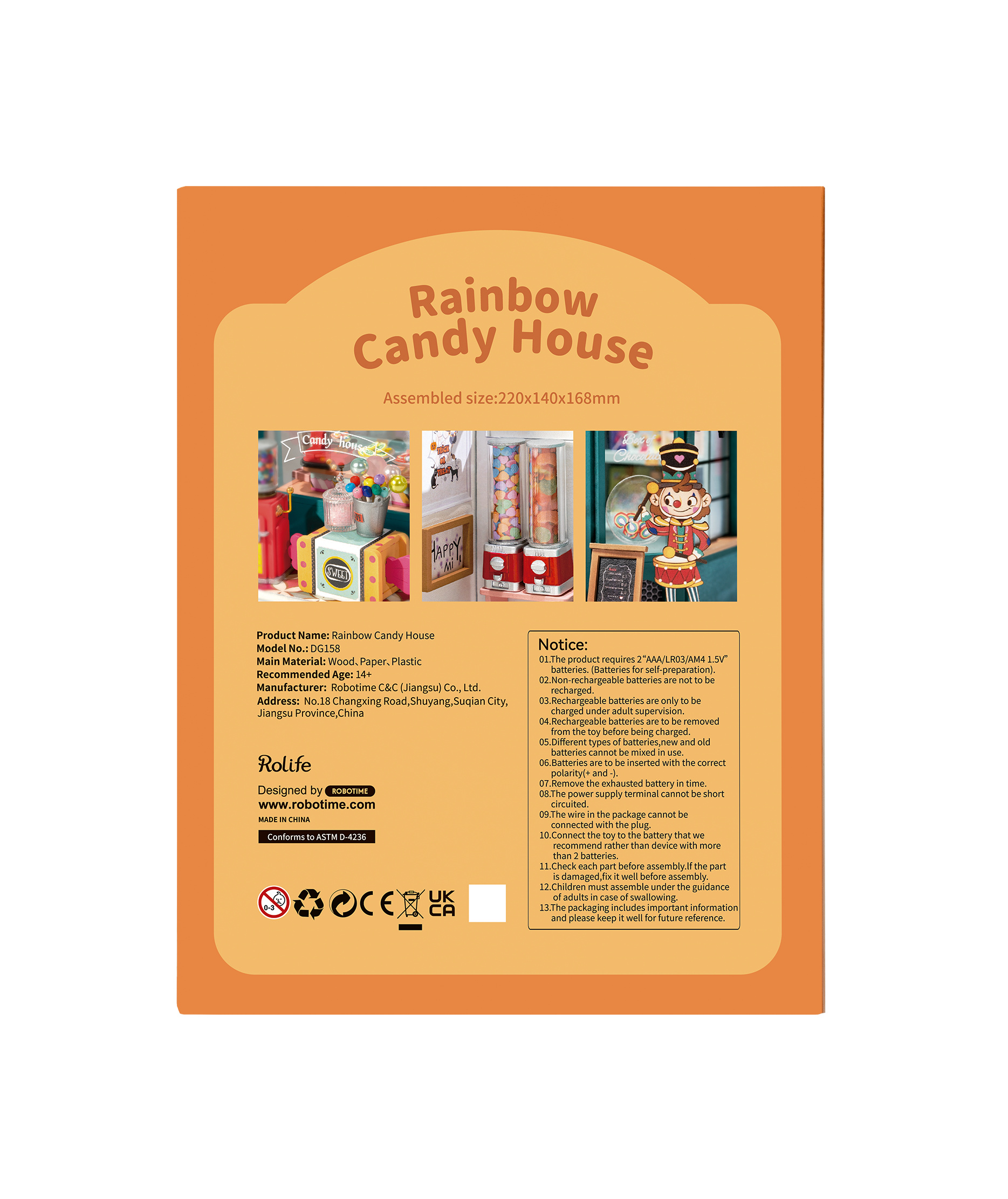 Snadná montáž, která nevyžaduje malování, znamená, že můžete okamžitě začít tvořit. Promyšlený design s průhlednými okny a otevíracími dveřmi vás vtáhne do detailní scény plné pestrých bonbónů a cukrovinek. A když zapnete LED světlo, se tato cukrárna promění v magický svět, který září přesně jako Vaše nejlepší dětské sny. Přidejte si Rolife Rainbow Candy House DIY - 3D miniaturní domeček Cukrárna, DG158, do svého života a zažijte radost z tvorby a sdílení. Ideální jako dárek, nebo jako osobní projekt, kterým si zpříjemníte dlouhé večery. Vytvořte si svůj vlastní cukrovinkový dům plný radosti a barev.
