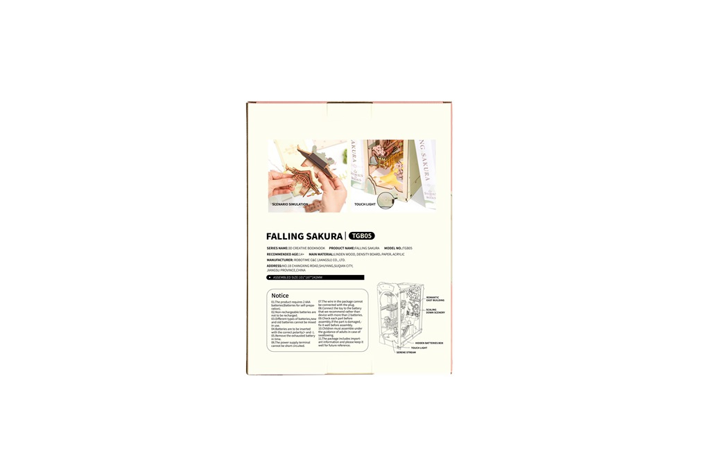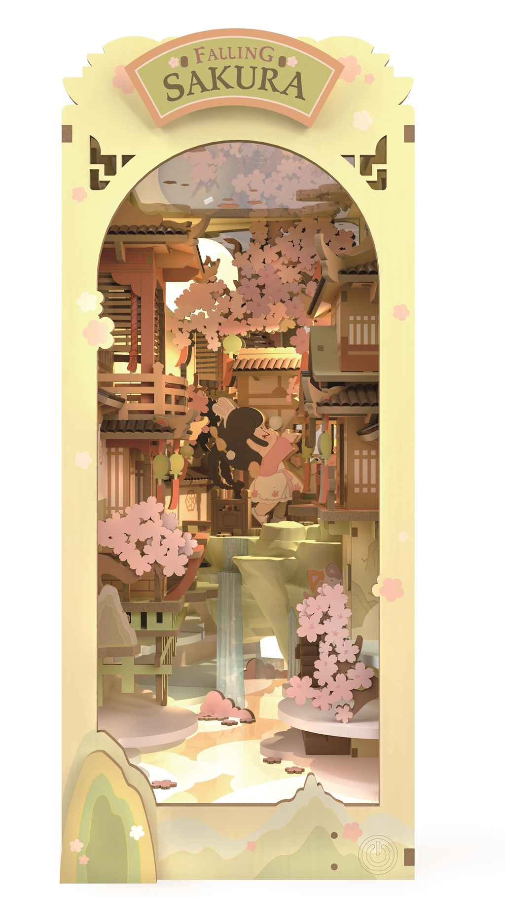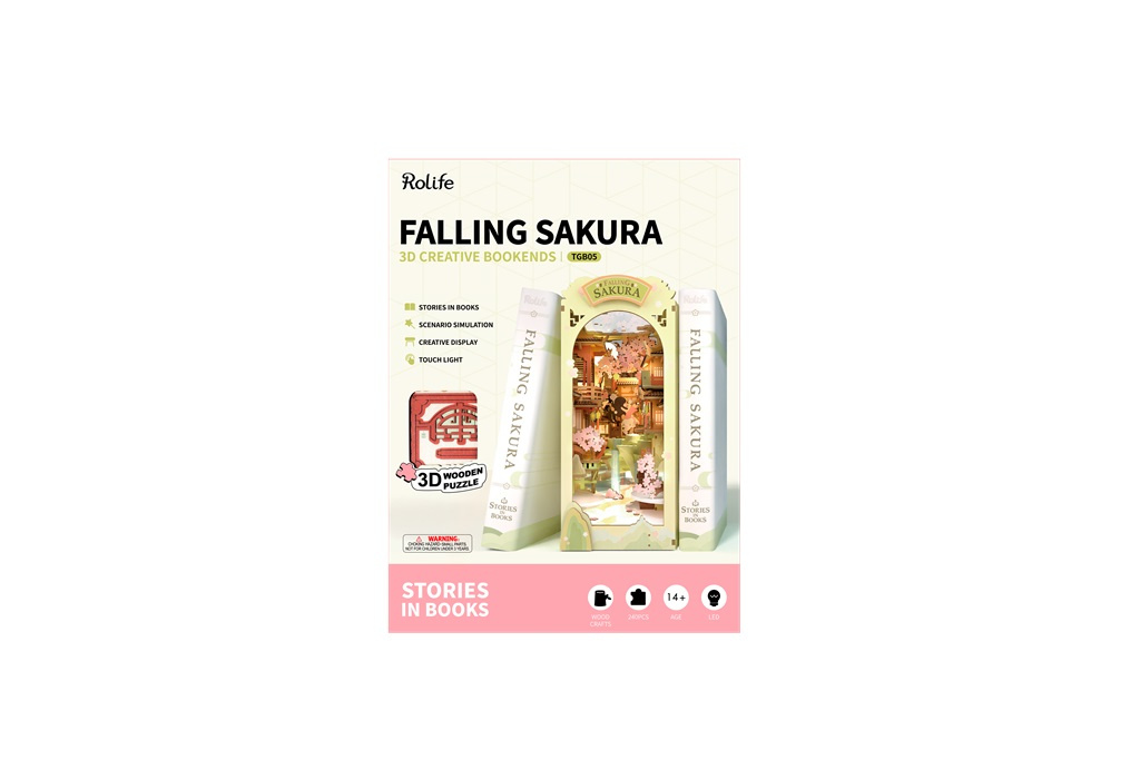 Milovníci knih a japonské kultury, představujeme vám Falling Sakura – 3D puzzle zarážka na knihy inspirovaná show třešňového květu v Japonsku. Tento unikátní produkt vám umožní přenést kousek tokijských ulic přímo do vaší knihovny. Falling Sakura je miniaturní dřevěný domeček na hřbetě knihy, který zdobí vaši knihovnu a zároveň slouží jako praktická zarážka. V balení naleznete vše, co potřebujete k vybudování krásné scény, která vás přenese přímo do srdce japonského jara. A co je na tom nejlepší? Domeček je osvětlený teplým LED světlem, které zdůrazňuje detaily a dodává celé scéně úžasnou atmosféru.