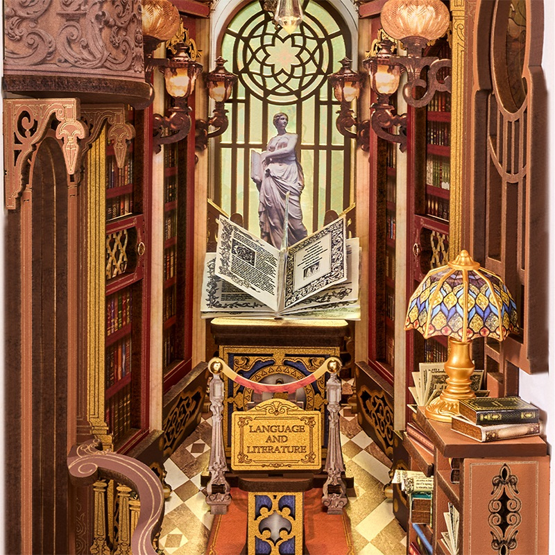 Zažijte kouzlo Knihovny divů, jedinečného knižního koutku, který vás přenese do světa goticko-viktoriánské elegance. Tento detailně propracovaný model kombinuje viktoriánskou architekturu, římské sloupy, klasické sochy, vzácné artefakty a řady starožitných knih, čímž vytváří dojem tajemného archivu bohů.