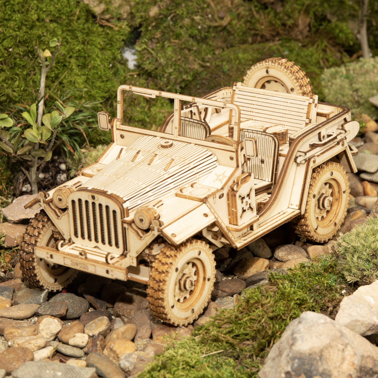 Detailní model vojenského džípu v měřítku 1:18 byl inspirován legendárními džípy GAZ ze 40. let, u nás známými pod přezdívkou „Čapajev“. Je určen k vystavení a dekoraci, není proto pohyblivý. Pro radost všem technickým nadšencům je ovšem vybaven funkčním odpružením náprav. Přírodní úprava je univerzálně vhodná do každého interiéru, model však můžete přizpůsobit a nabarvit podle vlastních představ. Nezapomeňte se nám svou úpravou pochlubit! Skládačka je dodávána v krabici spolu s podrobným ilustrovaným návodem k sestavení.