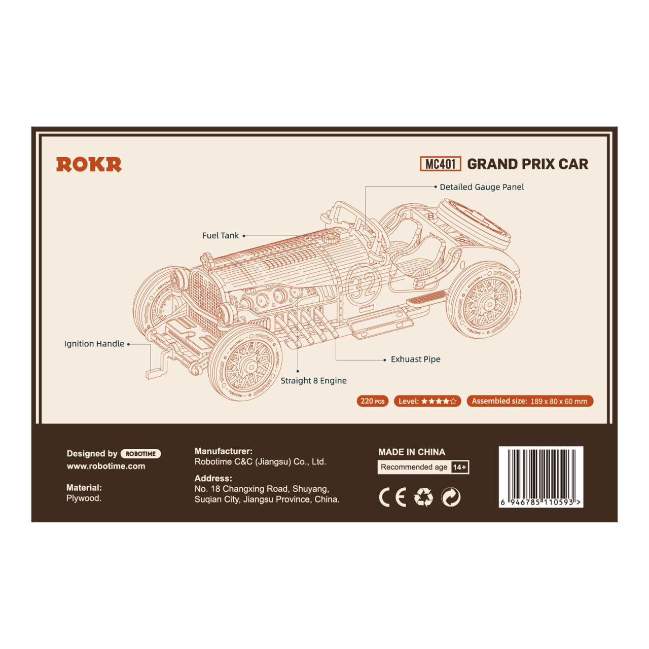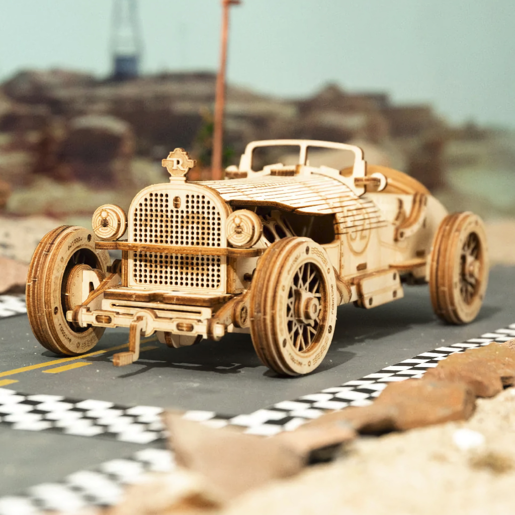 Detailní model historického závodního auta v měřítku 1:16 byl inspirován vozy, které stály u zrodu automobilového sportu. Je určen k vystavení a dekoraci, není proto pohyblivý. Přírodní úprava je univerzálně vhodná do každého interiéru, model však můžete přizpůsobit a nabarvit podle vlastních představ. Nezapomeňte se nám svou úpravou pochlubit! Skládačka je dodávána v krabici spolu s podrobným ilustrovaným návodem k sestavení.