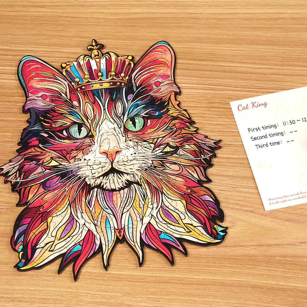 RoboTime Dřevěné puzzle Kočičí král