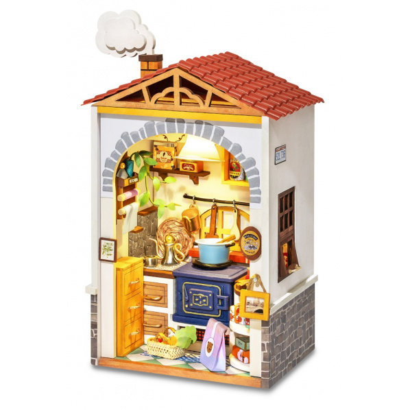 Lidé, kteří milují život, musí milovat kuchyni. V tomto malém světě se můžete věnovat vaření lahodných pokrmů pro své blízké. Čas na snídani! Užijte si to! Propracovaný model domu v mini měřítku. Jeho stavba nabízí tolik zábavy. Až ho dokončíte, bude se na poličce nebo na stole vyjímat jako poutavý exponát. Mini městečko je inspirováno světem kreslených filmů. Užívejte si pohodový život v městečku z krabičky a postavte si svůj vlastní pohádkový svět! Dodáváno v nesloženém stavu, baleno v krabici spolu s detailním návodem k sestavení.