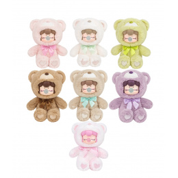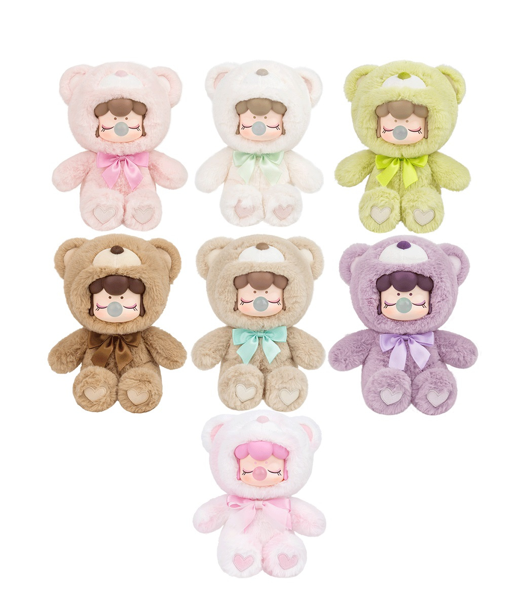 Roztomilá Nanci, plyšová panenka s typickým výrazem, si okamžitě získá pozornost malých i velkých sběratelů. Má zavřené oči, kulatý obličej a nafouknutou bublinu ze žvýkačky, která tvoří výrazný hravý detail. Celá panenka je provedena v jednom celku z měkkého plyšového materiálu, tvarovaného do podoby medvídka, s mašlí u krku. Na tlapkách jsou jemné vyšité detaily ve tvaru srdíček. Díky hebkému materiálu je panenka příjemná na dotek, vhodná k mazlení i jako dekorace do dětského pokoje. Panenky jsou dostupné v několika barevných variantách. Každý kus je balen samostatně a odesílá se náhodně, nikdo předem neví, jaká varianta se v krabičce ukrývá. Otevření balení je tak vždy malým překvapením.