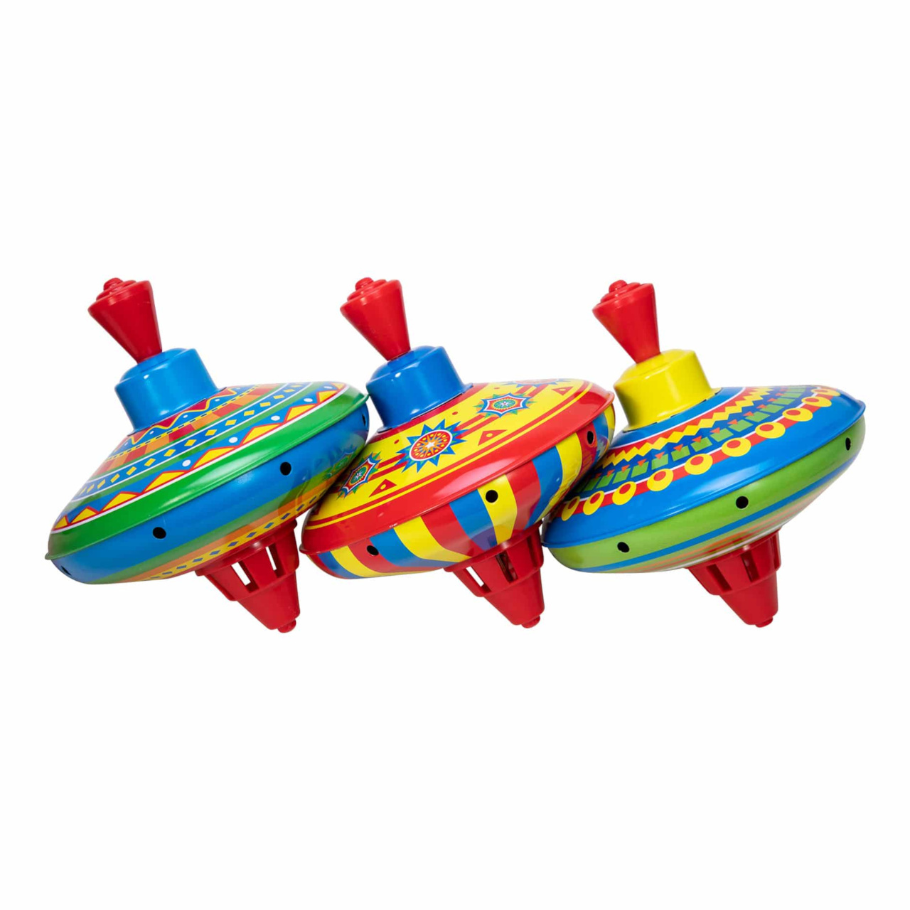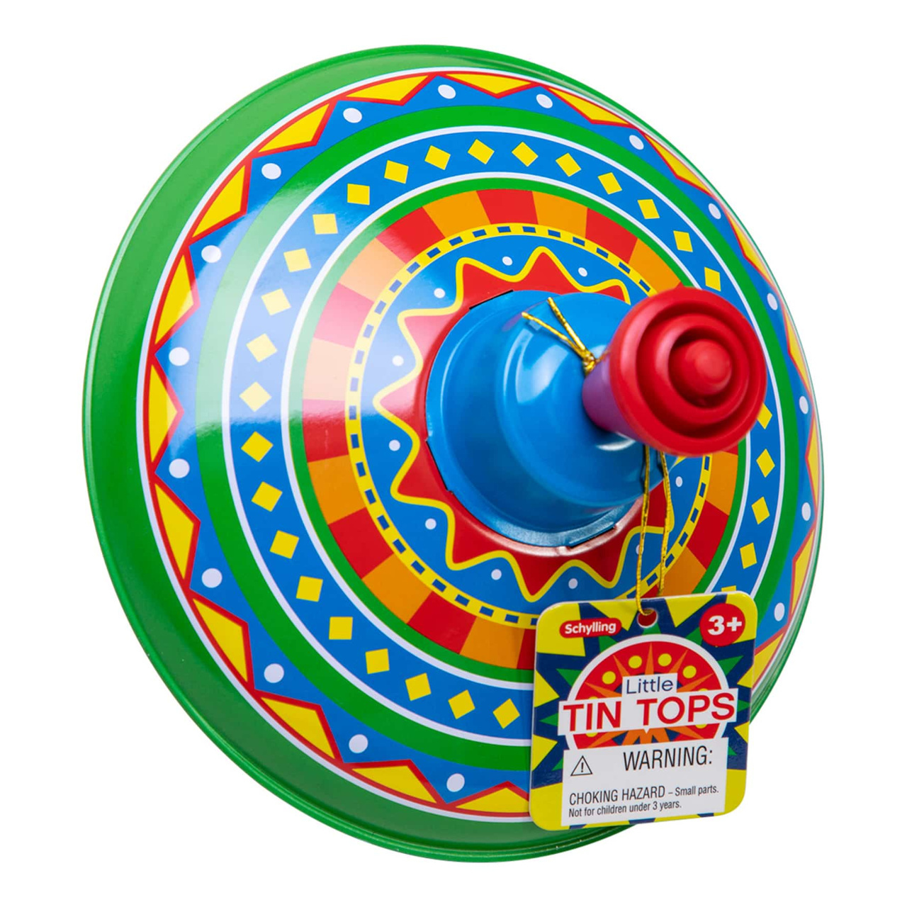 Schylling's Little Tin Tops se vyznačují výraznými základními barvami a retro vzory. Oblíbená hračka pro Vaše děti, pestrobarevná hrací káča. Stačí stlačit páčku, káča se začne točit a vydávat typický zvuk.