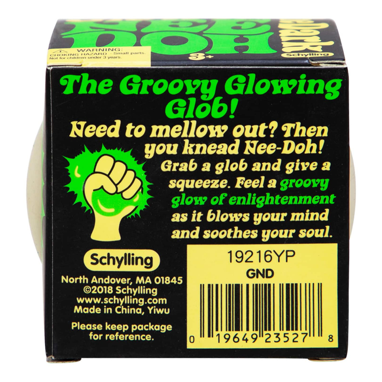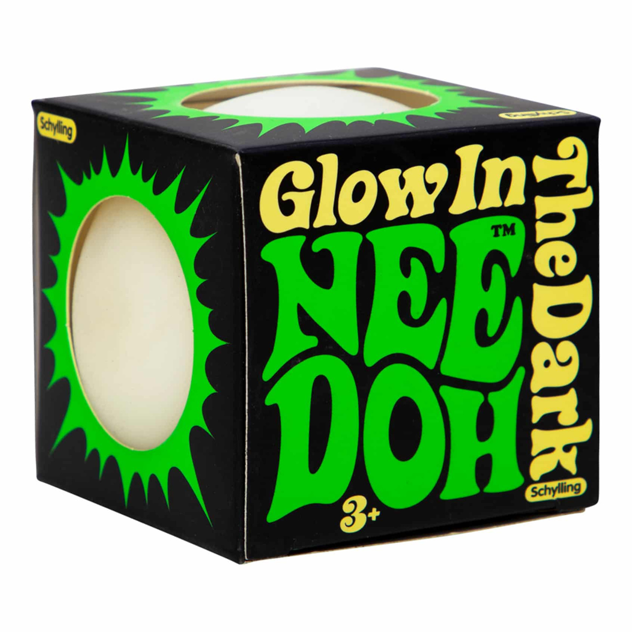 Schylling's Glow In The Dark NeeDoh je mačkací, ve tmě svítící míček se zelenou září. Tento jedinečný antistresový míček, je zárověň neposedná hračka, kterou lze mačkat, tahat. Perfektní způsob, jak si zlepšit náladu, když přijde tma.