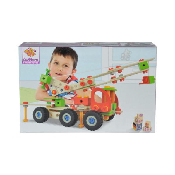Popis produktu Simba Stavebnice Constructor 4 Autojeřáb, 190 dílůDřevěná stavebnice, ze které lze sestavit 4 modely: pojízdný jeřáb, buggy, jeep, nákladní auto. Sada podporuje a trénuje prostorové myšlení a zručnost. Obsahuje 190 dílů.SIMBA TOYS GmbH & Co. KG, Werkstraße 1, 90765 Fürth, Germany, info@simba-dickie.com