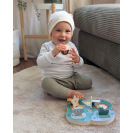 Snadno je přitom lze napodobováním zvuků vést hravým způsobem k prvním slůvkům. Dřevěné dílky jsou velikostí i oblými tvary přizpůsobeny k manipulaci malými dětskými ručičkami, jsou příjemné na dotek, a pomáhají tak stimulovat hmat.