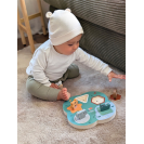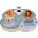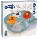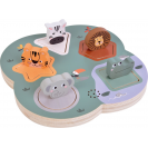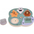 Nechejte děti rozpoznávat tvary i zvířátka a bavit se jejich roztomilými zvuky. Barevné dřevěné puzzle se zvuky promění učení v opravdové dobrodružství. Pět zvířátek - lev, tygr, slon, zebra a krokodýl - čeká, až je děti umístí na správné místo. Jakmile některé zvednou, puzzle je odmění realistickým zvukem zvířete. Kombinace hry, zvuků a barev rozvíjí vnímání, logiku i motoriku.