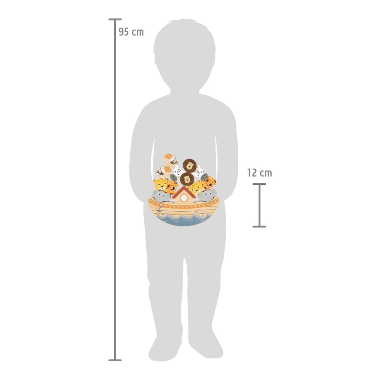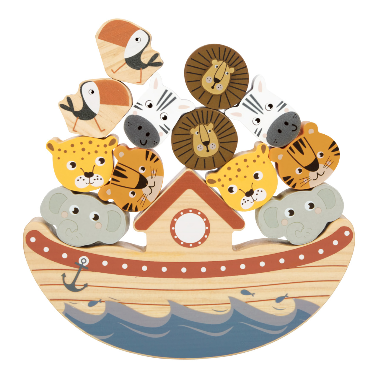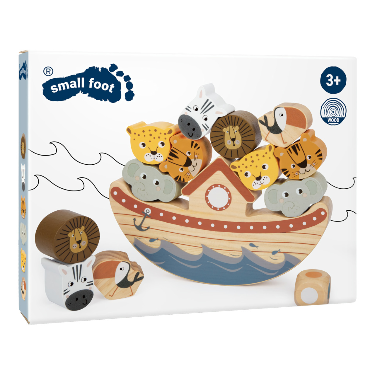 Vybalancujete vratkou archu a zachráníte před potopou všechna zvířátka? Házejte kostkou a ukládejte dílky příslušných barev s motivy roztomilých zvířat na základnu v podobě rozhoupané lodi. Rozvíjejte hrou koordinaci rukou a zraku či trpělivost. Hračka je velmi robustní a odolná, vyrobená z masivního dřeva a vyvedená v atraktivním barevném schématu produktové řady Small Foot Safari.