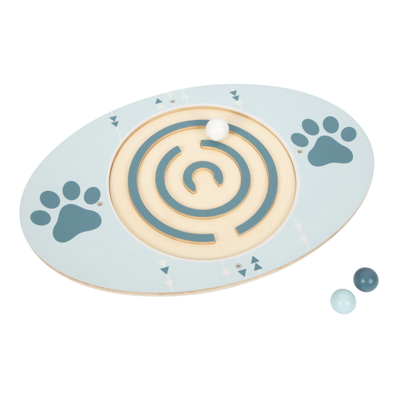Buďte obratní jako šelma! Trénujte rovnováhu a koordinaci pohybu dětí pomocí balančního prkna, přesunou kuličku do středu bludiště? Pravidelným tréninkem je možno procvičit svaly nohou, pánve i zad a přitom zdokonalit soustředění a trpělivost. Prkno svým oválným tvarem a ikonami tlapek naznačuje a nabízí nášlapnou plochu. Svým návrhem a barevností snadno nalezne místo v každém dětském pokoji a doplní řadu dalších balančních hraček Small Foot. Je vyrobeno ze silné, pevné a odolné překližky.