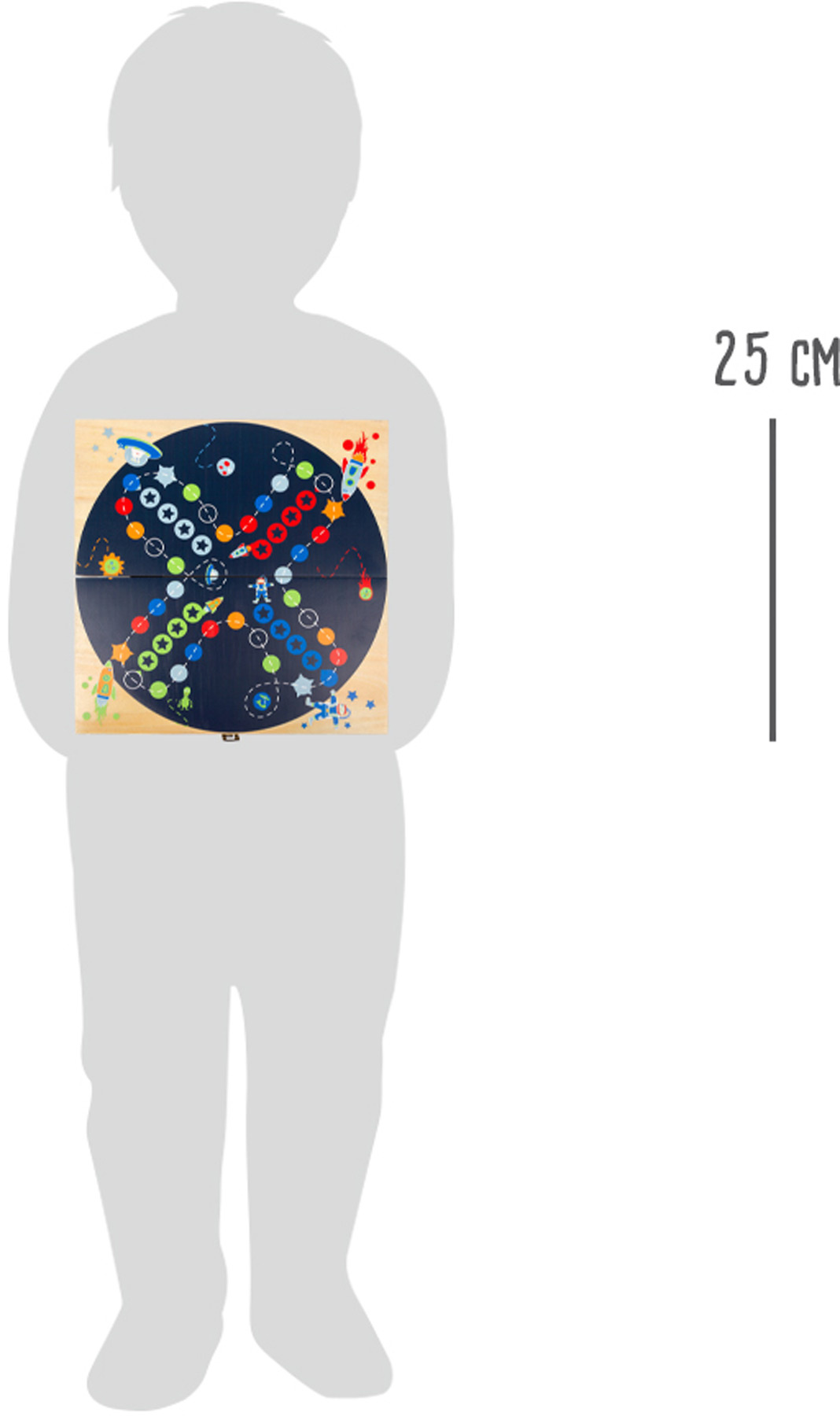 Vesmír na herní desce! S touto hrou „Člověče, nezlob se!“ se splní sny všech malých astronautů. Poletují zde rakety, mimozemšťané, kteří se snaží dostat zpět do domečku. Klasická hra Člověče, která má krásný design a 2 typy kostek, takže je vhodná i pro děti, které ještě neumí počítat. Kdo jako první dostane své figurky do domečku – pole s hvězdami – vyhrává. Herní deska má zámeček a tak je vhodná i na cesty.