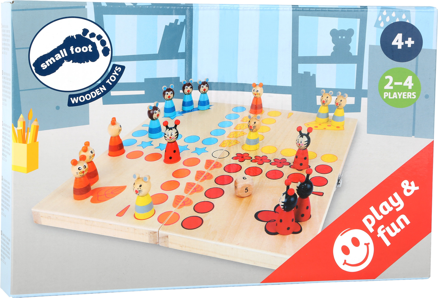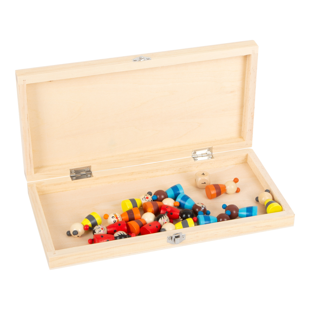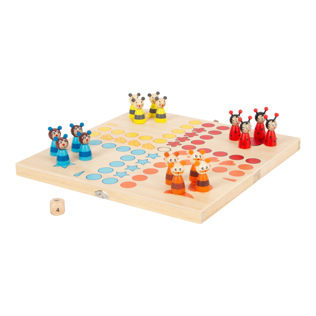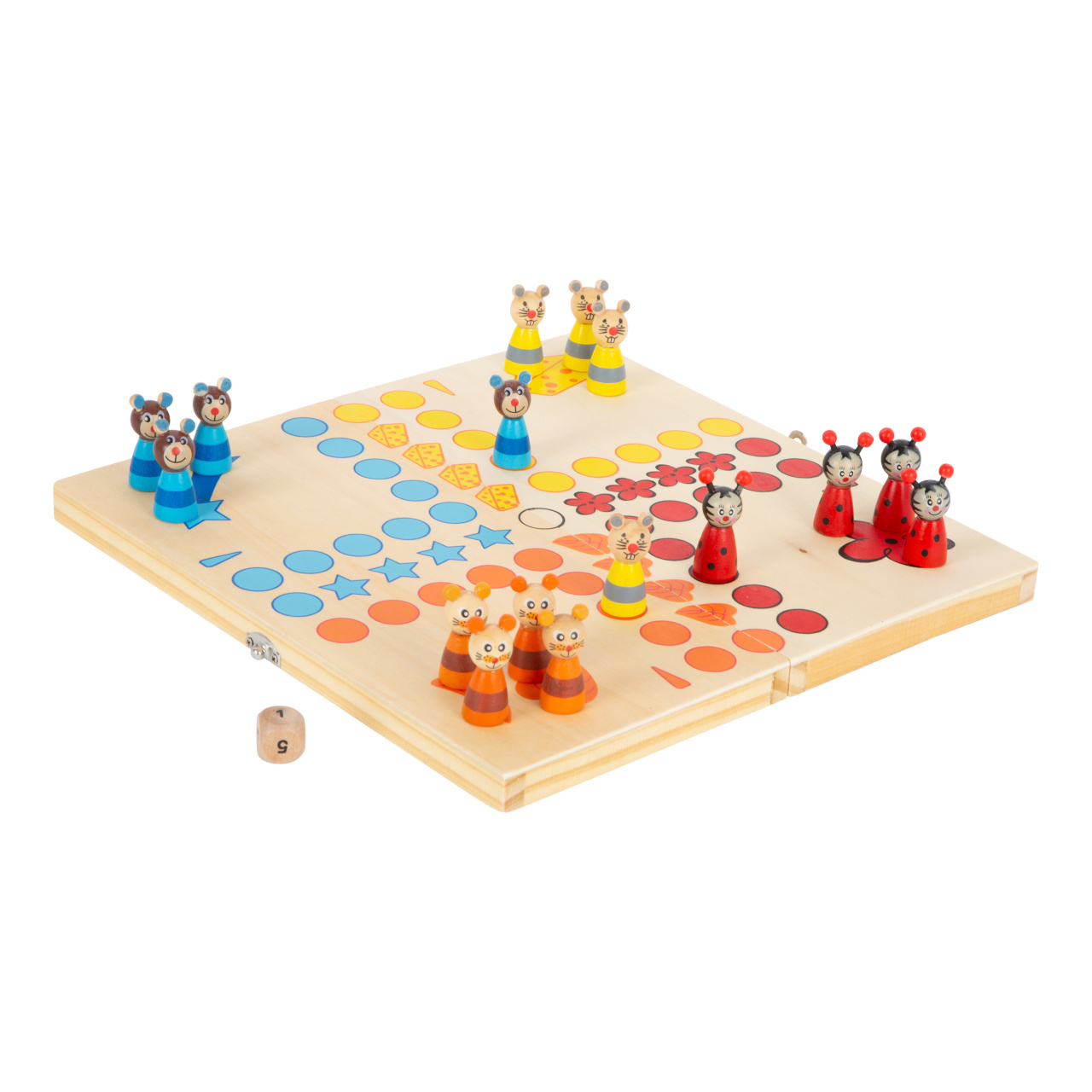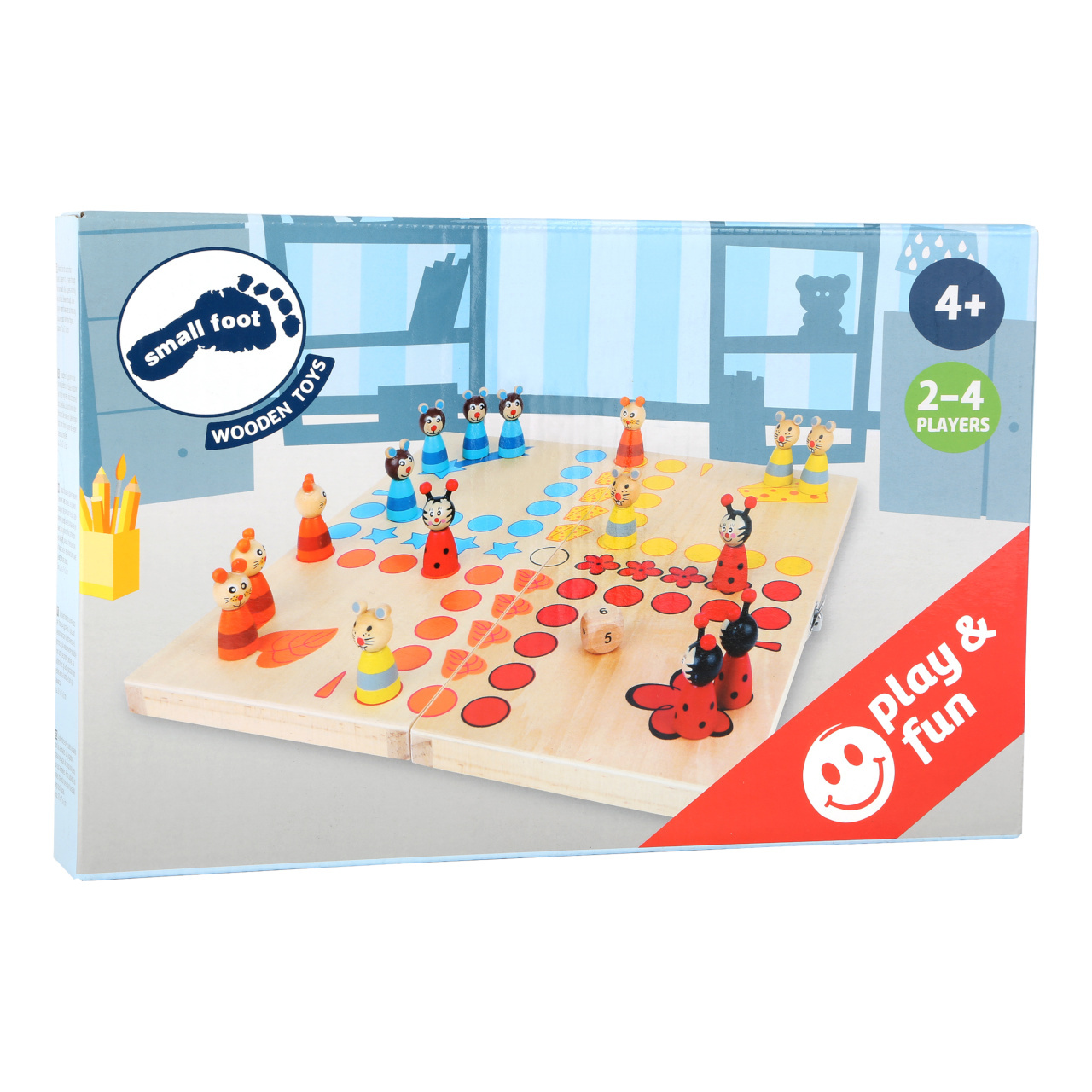 Klasická hra v legrační designu, kdy hráči hrají se zvířecími postavičkami. Hra je pro 1-4 hráče. Umístěním herních dílků se trénuje jemná dětská motorika. Roztomilé, pestrobarevné herní figurky mají design vhodný pro děti. Hru lze prakticky a bezpečně uložit do dřevěné krabice se západkou, takže je ideální, když jste na cestách nebo na výletech. Balení obsahuje 16 figurek a 1 kostku.