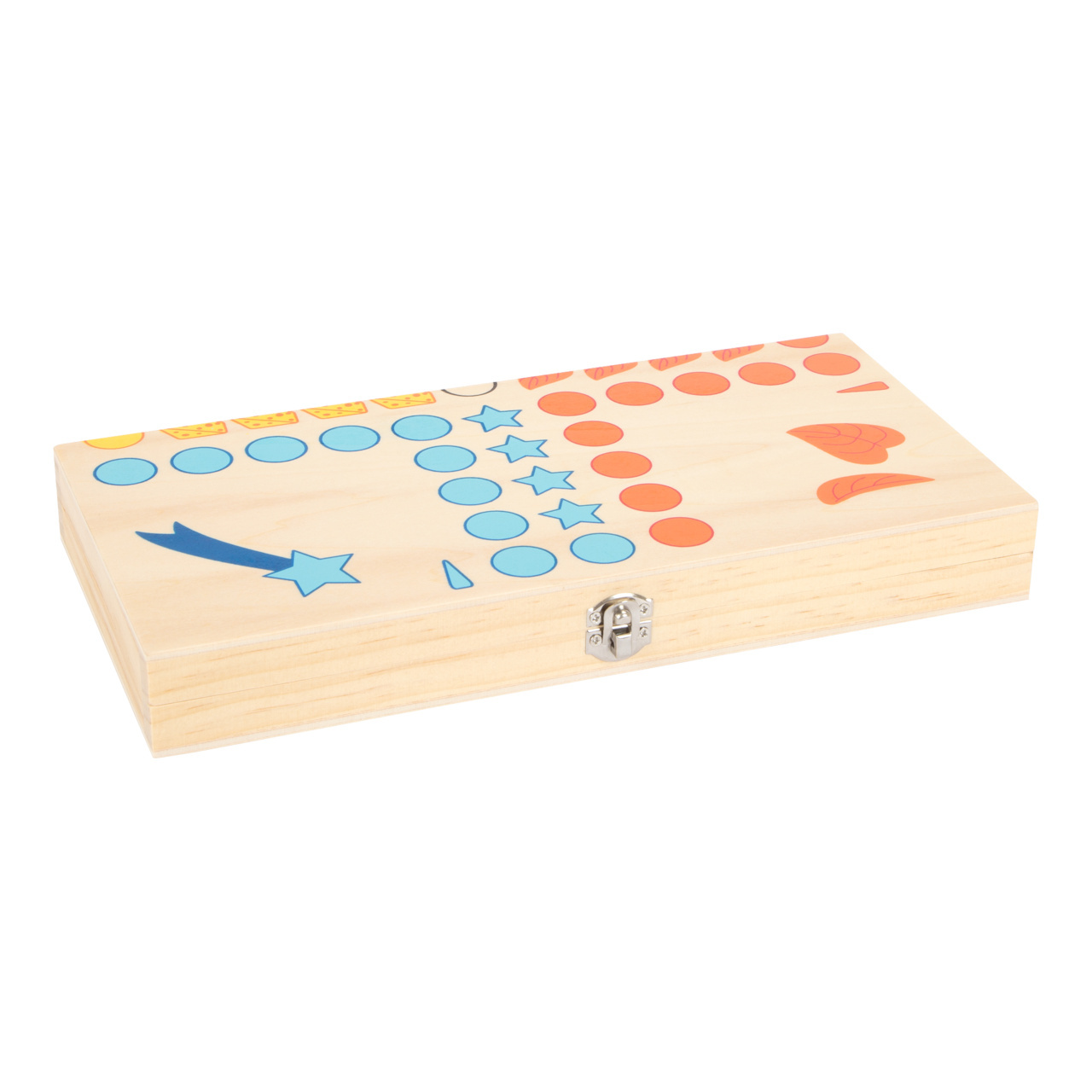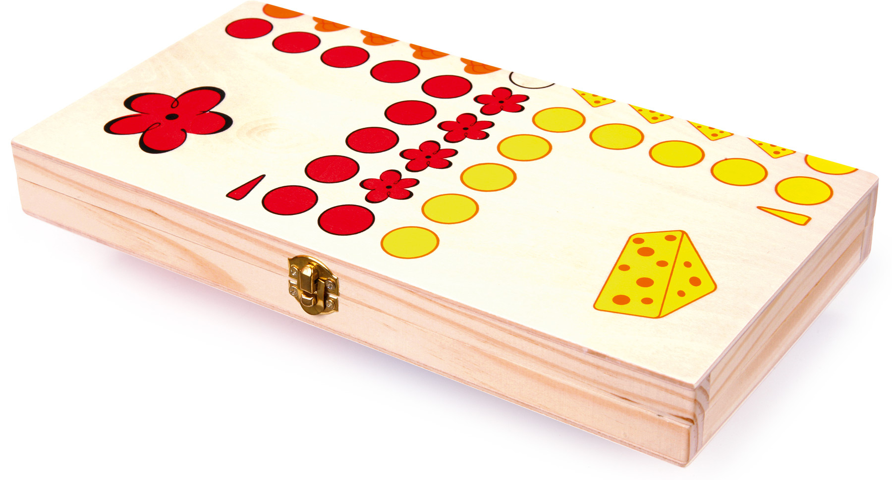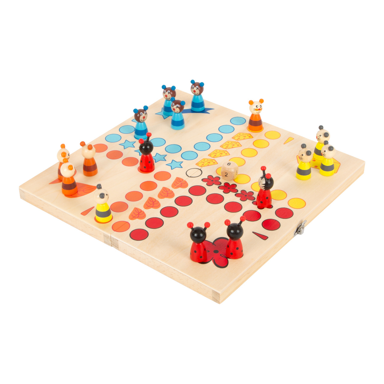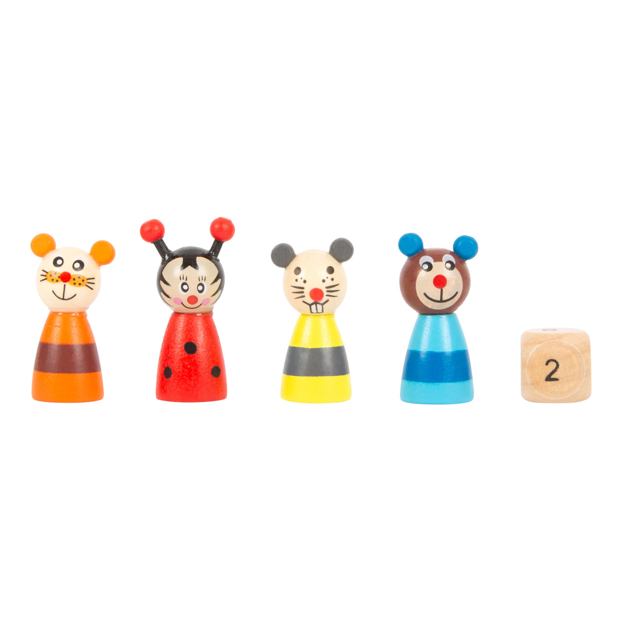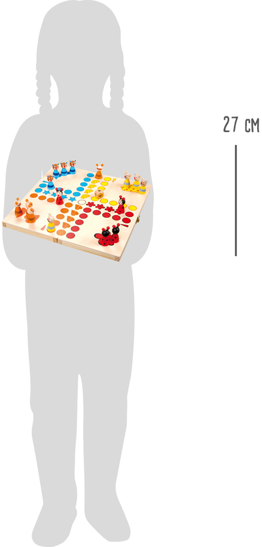 Klasická hra v legrační designu, kdy hráči hrají se zvířecími postavičkami. Hra je pro 1-4 hráče. Umístěním herních dílků se trénuje jemná dětská motorika. Roztomilé, pestrobarevné herní figurky mají design vhodný pro děti. Hru lze prakticky a bezpečně uložit do dřevěné krabice se západkou, takže je ideální, když jste na cestách nebo na výletech. Balení obsahuje 16 figurek a 1 kostku.