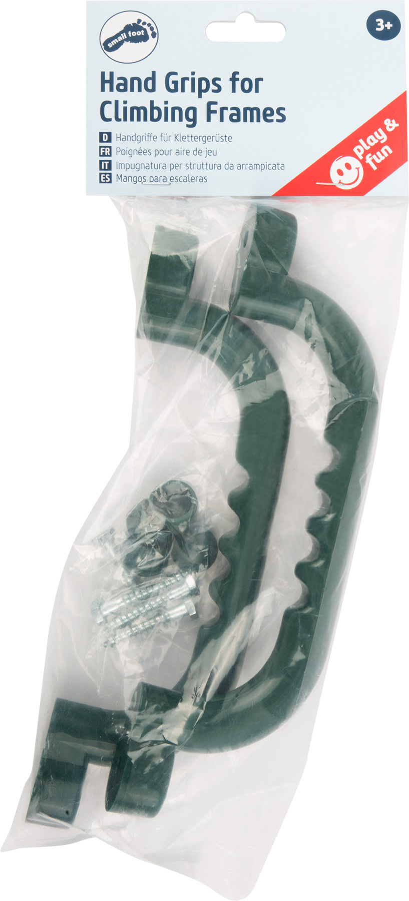 Kdo chce zkusit gymnastiku na zahradě? Malí gymnasté a gymnastky teď mohou trénovat ještě víc! Každé domácí hřiště se díky těmto madlům stane opravdovou parkurovou dráhou. Jsou pevná, robustní a tvarem ergonomicky přizpůsobena dětským prstům, nabízí tak pevný a jistý úchop. Vyrobena jsou z nezávadného plastu odolného povětrnostním vlivům. Je možno je připevnit individuálně a součástí balení je i nezbytný spojovací materiál.