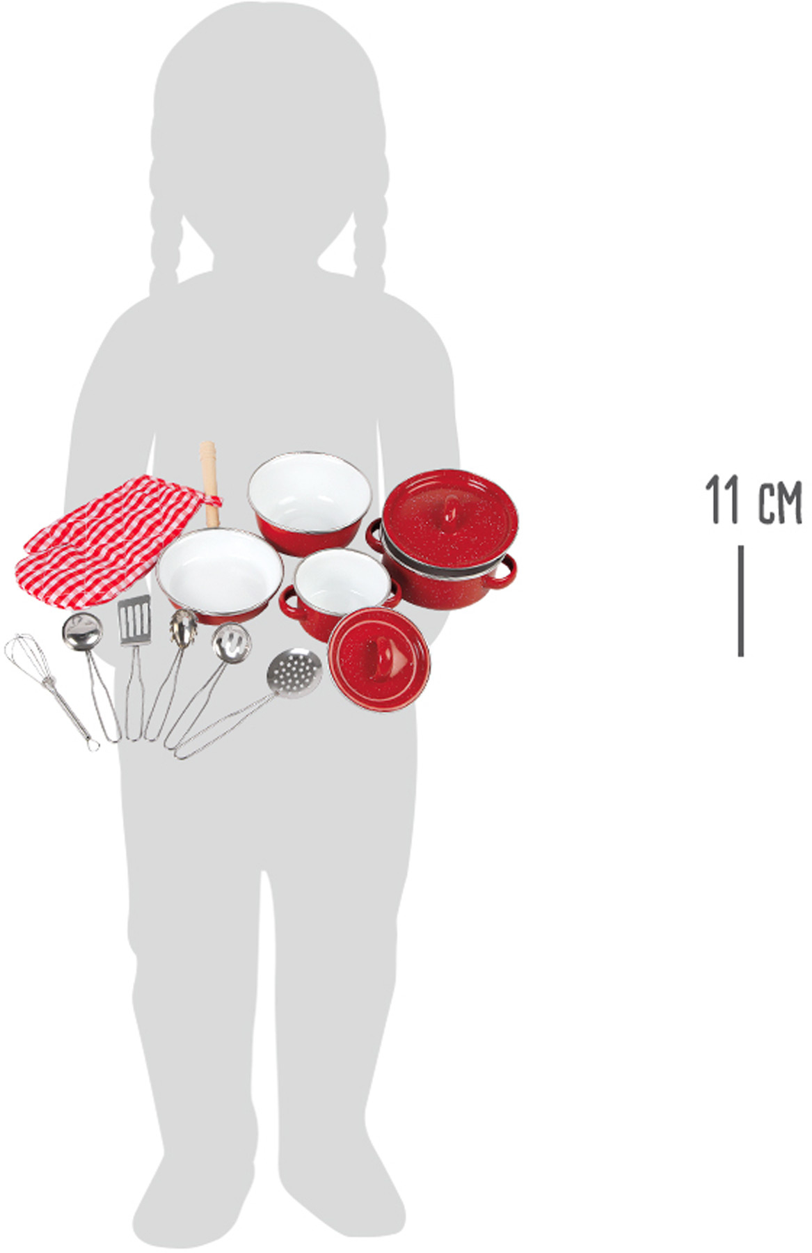 Perfektní začátečnická sada pro začínající mladé kuchaře, kteří rádi připravují lahůdky. S touto sadou v jasně červené barvě s různými kuchyňskými potřebami, jako je hrnec, pánev, chňapka, či jiné kuchyňské pomůcky, se každé dítě stane mistrem kuchařem. Ideální pro rodičovské a dětské interaktivní hry a skvělý způsob, jak podpořit kreativní a nápadité hraní.