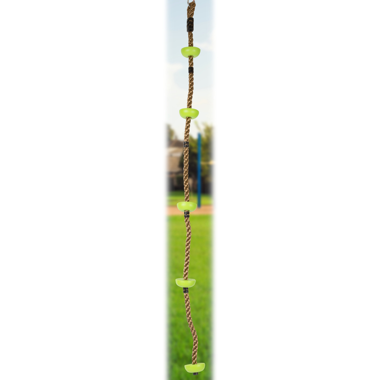 Kdo vyšplhá až po nejvyšší stupínek? Lezecké lano se neztratí na žádné zahradě! Jeho prostřednictvím mohou Vaše malé opičky cvičit a poměřovat svou sílu i hbitost. Nylonové lano je velmi poddajné, a lze je proto snadno uklidit. Na konci je opatřeno kovovým kroužkem k zavěšení. Stupínky z nezávadného plastu v atraktivní barvě pomáhají dětem začít se šplhem. Díky použitým materiálům může pomůcka nabídnout vysokou odolnost a životnost.