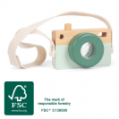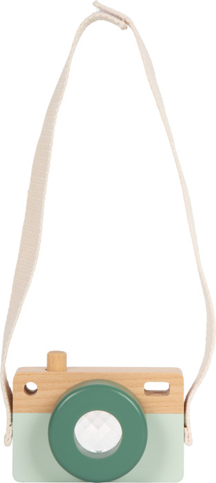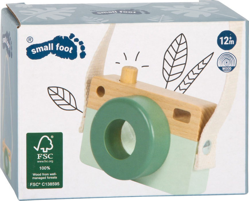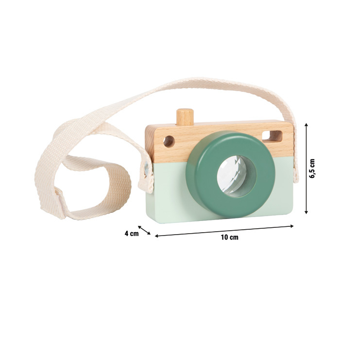 Tento roztomilý dřevěný fotoaparát vyrobený ze 100% FSC® certifikovaného dřeva nadchne všechny malé dobrodruhy! Nabízí kouzelný kaleidoskopický efekt, pohyblivé tlačítko spouště a praktické poutko na nošení. Bez potřeby baterií si děti mohou hrát na malé fotografy, objevovat svět kolem sebe a rozvíjet svou fantazii. Hledáček fotoaparátu tvoří kaleidoskop, díky kterému děti uvidí svět barevně, vzory a zkreslené obrazy budou podněcovat jejich zrakové vnímání i fantazii. Kompaktní dřevěné tělo s moderním vzhledem padne skvěle do dětských ruček. Pohyblivé tlačítko spouště trénuje obratnost a textilní popruh se suchým zipem zajišťuje bezpečné a pohodlné nošení. Ať už si děti hrají na focení doma, nebo zkoumají svět venku, tato hračka podporuje nápodobu dospělých a dává prostor volné hře bez technologií, stačí jen fantazie a chuť objevovat.