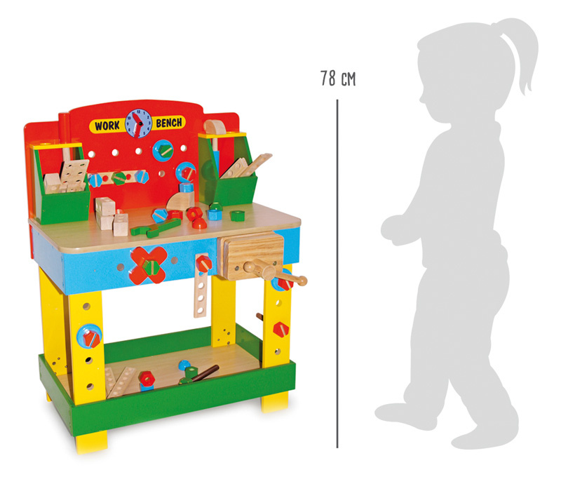 Jak dělat práci se dřevem jako dospělí? S tímto krásným pracovním stolem z masivního bukového dřeva a barevné překližky to půjde skvěle. Kluci zažijí spoustu skvělé zábavy. Pro nadšené malé kutily bude tento ponk inspirací k tvorbě a poznávání nářadí, materiálů a výrobních technologií. V neposlední řadě si kutilové prohloubí manuální zručnost. Součástí balení je vše dle obrázku.