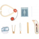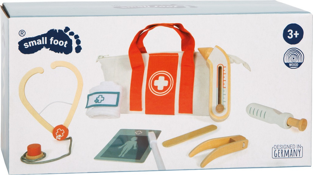 Pro malé lékaře a jejich velké mise! Tato praktická sada pro děti promění každou hru v opravdovou lékařskou návštěvu. Součástí je pevná látková taška se zipem a pohodlnými rukojeťmi, ideální pro přenášení, a bohatá kolekce kvalitních dřevěných hraček: stetoskop, zasouvací injekční stříkačka, teploměr s nastavitelným ukazatelem, pinzeta, špachtle, obvaz se suchým zipem a popisovatelné karty pacienta s fixou. Děti mohou naslouchat tlukotu srdce plyšového medvídka, aplikovat injekci panence nebo měřit horečku - možnosti hry jsou nekonečné. Pohyblivé části, jako zasouvací stříkačka a nastavitelný teploměr, podporují kreativitu a rozvoj koordinace. Taška je lehká a snadno se přenáší, perfektní pro hraní doma, v herně, na cestách nebo ve školce. Realistické prvky povzbuzují děti k objevování pečovatelských rolí, trénování jemné motoriky a zkoušení sociálních dovedností. Sada zároveň rozvíjí řeč, empatii a porozumění lidskému tělu a zdraví. Ideální pro přípravu na skutečné návštěvy u lékaře, nebo prostě pro zábavné hraní rolí s panenkami, kamarády či sourozenci.