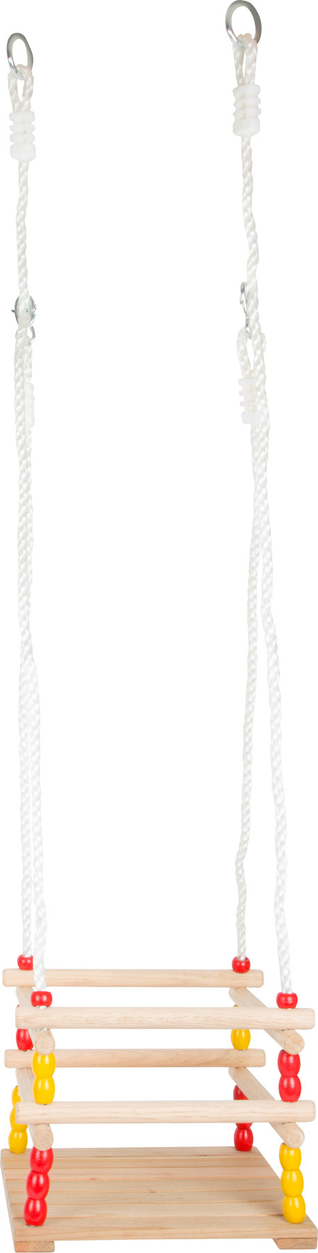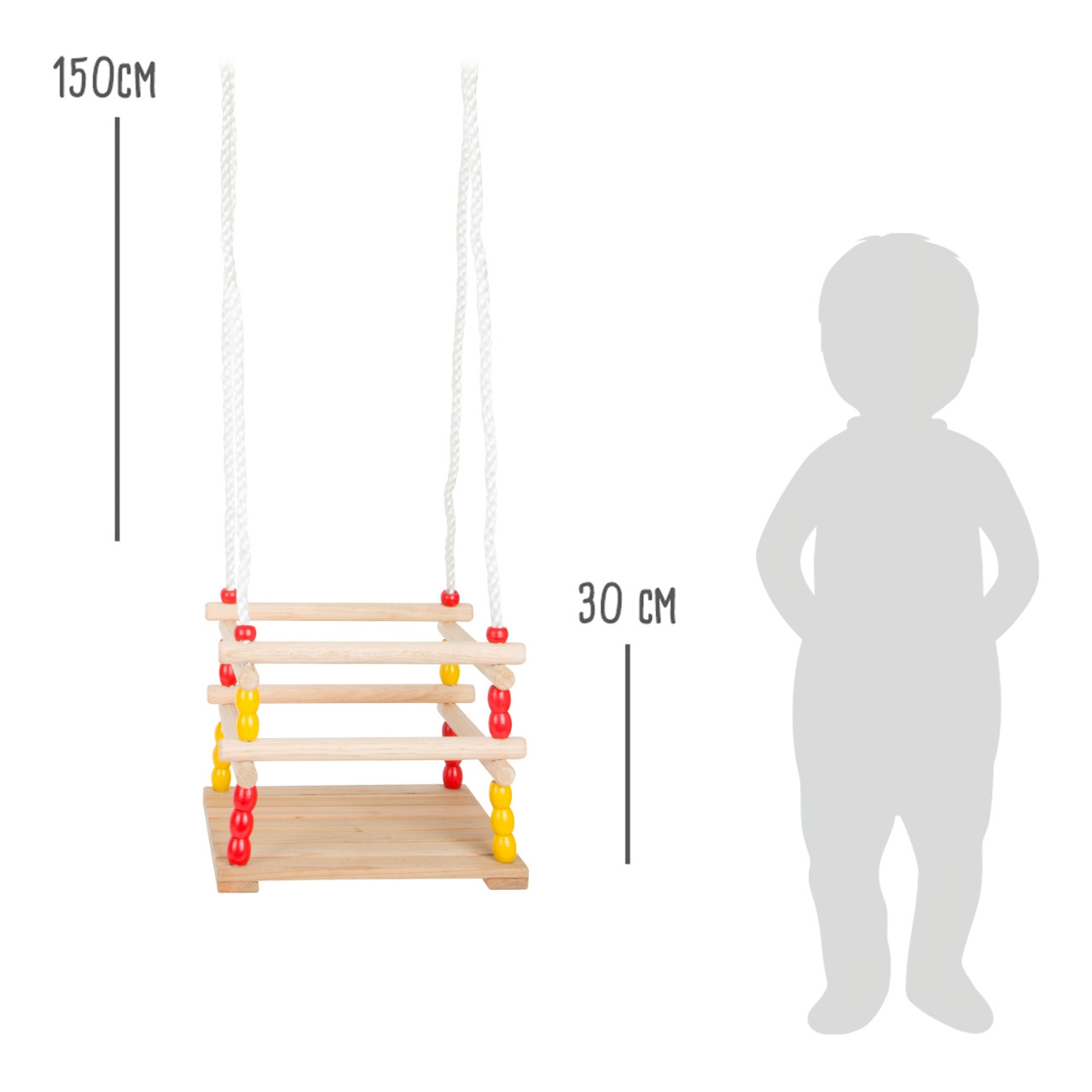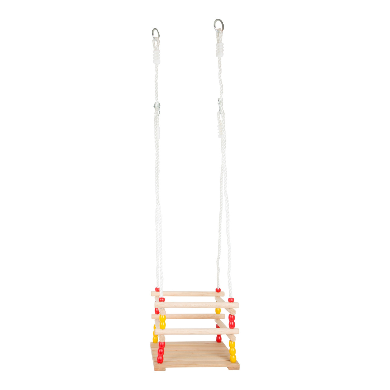 Dřevěná houpačka s hrazením, o které se děti mohou opřít a pevně se jej přichytit. Pevná plastová lana jsou na koncích opatřena kroužky k zavěšení a jejich délku lze pomocí kovových průvleků snadno nastavit. Houpačka je vyrobena z pečlivě opracovaného masivního dřeva a je dodávána ve složeném stavu, připravena k zavěšení.