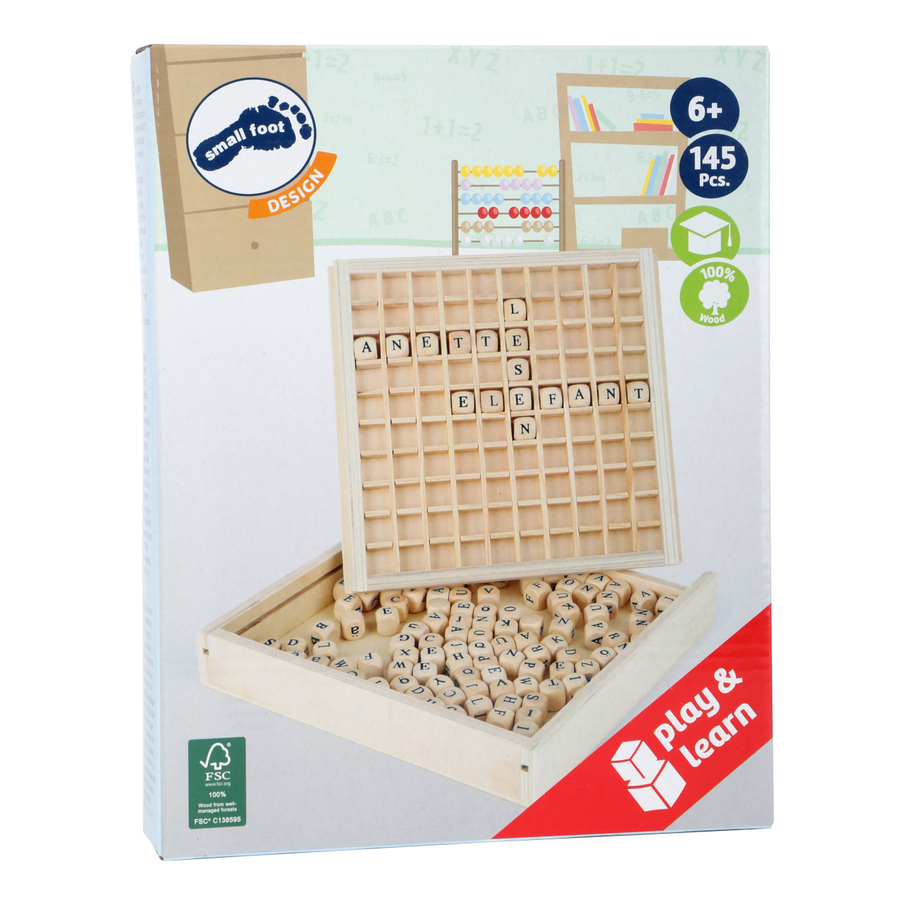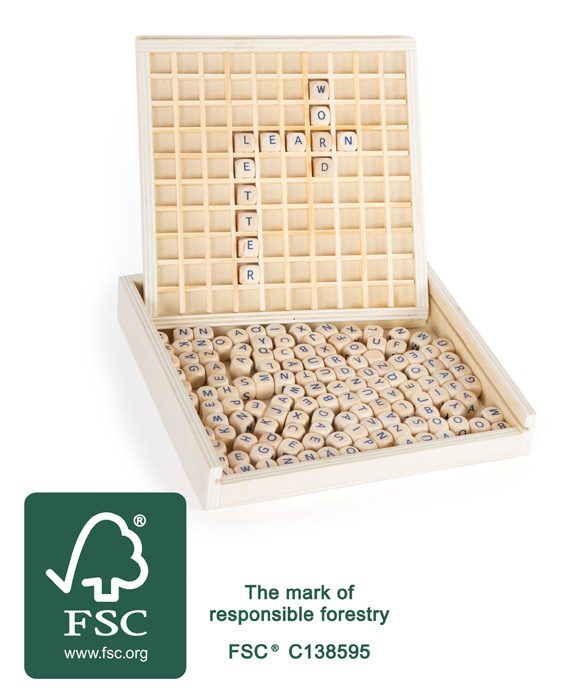 S touto hrou na principu známé hry Scrabble vytvořené ze 100% certifikovaného FSC® dřeva si děti mohou potrénovat slovní zásobu. Herní deska má připravená okýnka, do kterých kameny vložíte, ty tak budou držet na místě. Dílky po skončení hry můžete uložit do dřevěného boxu, hra se hodí i na cesty. Produkt odpovídá vyobrazení.