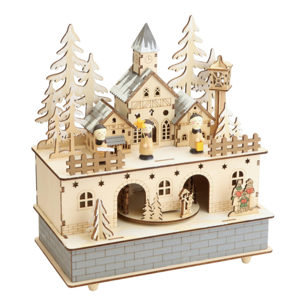 Vykouzlete si nejen vánoční atmosféru při pohledu na tančící postavičky v kouzelné vesnici. Při natažení hraje známá melodie a pod zasněženou osvětlenou krajinou tančí postavičky.