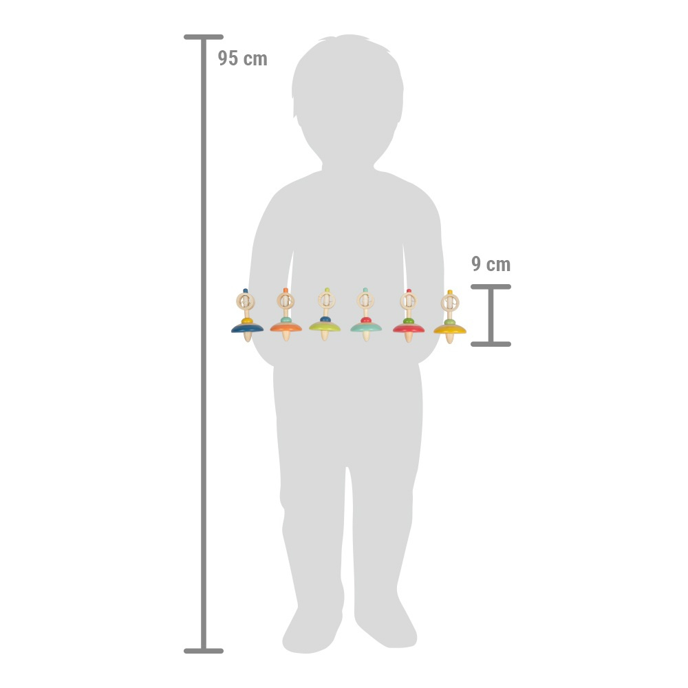 Hledáte zábavnou a tradiční hračku, která zaručeně rozjasní oči vašeho dítěte a zároveň podpoří jeho vývoj? Tato veselá káča v atraktivní kombinaci barvy přírodního dřeva a jasných barev vyrobená z masívního dřeva splňuje obojí. Káča se uvádí do pohybu zatáhnutím za namotaný provázek. Přitom je káču potřeba jemně a lehce přidržovat, aby se mohla roztočit. Chce to trochu cviku, ale je to zábava. Vaše dítě může káču darovat kamarádům nebo uspořádat soutěž v roztáčení káči. Komu se bude točit nejdéle? Navíc rozvíjí koordinaci ruka-oko, jemnou motoriku a motoriku prstů.