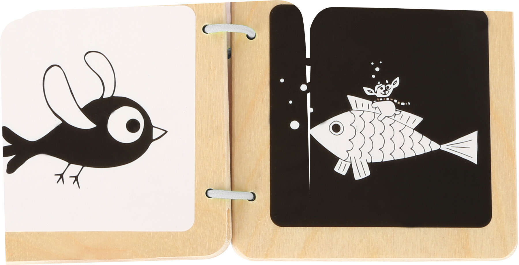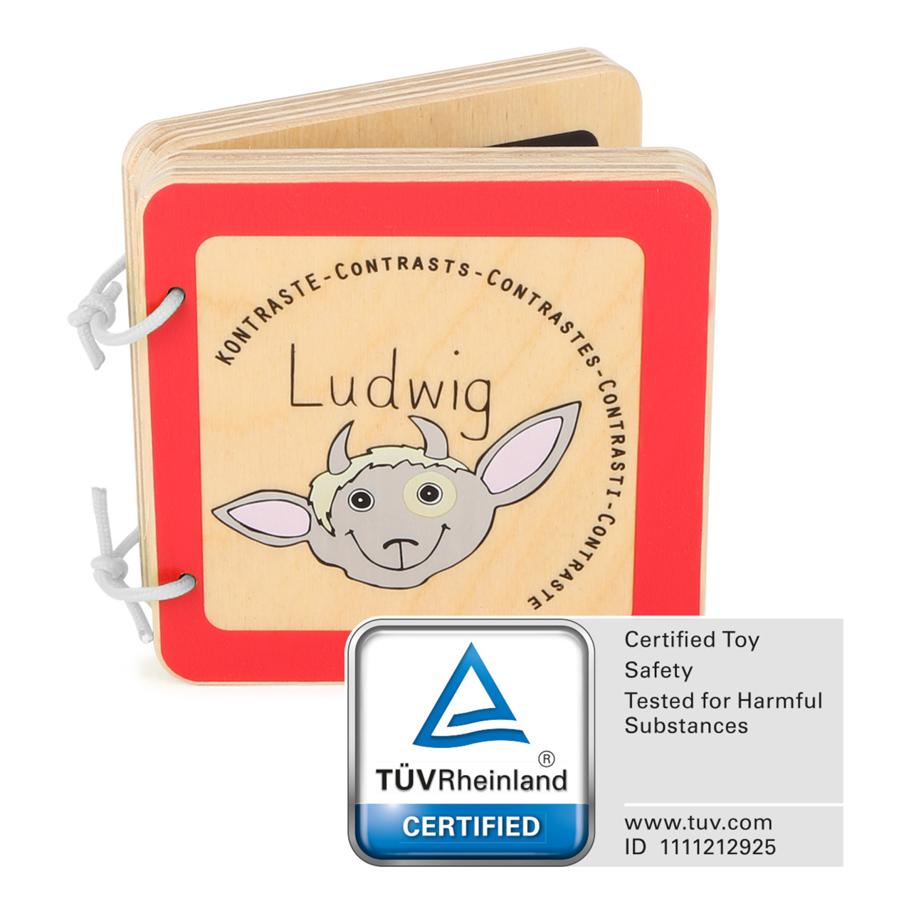 Prozkoumejte první černobílé kontrasty společně s humorným kozlem Ludwigem! Tato dřevěná knížka na základě vlastností, které mohou prokazatelně pozorovat především miminka, podporuje malé děti při jejich prvních smyslových vjemech. Tato kniha je vyrobena z robustního dřeva a je odolná vůči slinám a snadno se čistí a udržuje.