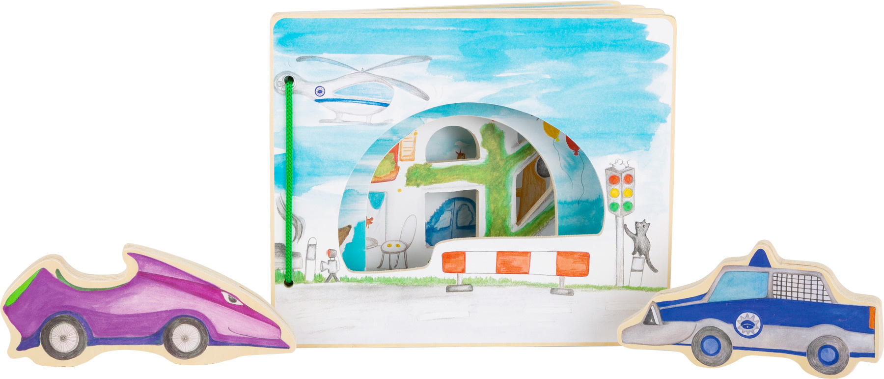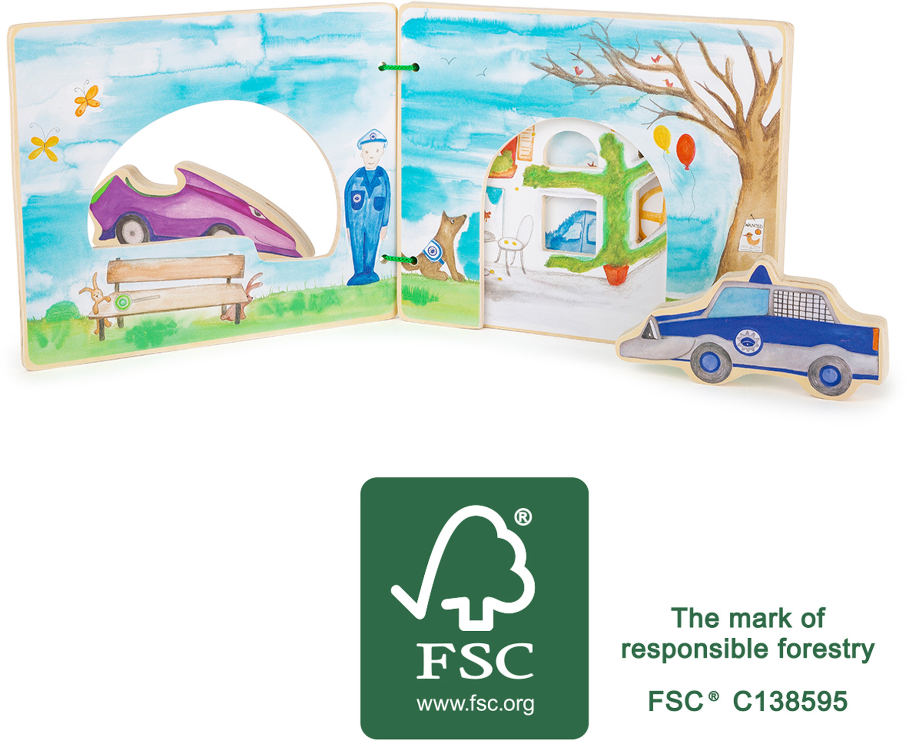 S touto interaktivní knížkou vyrobenou z FSC certifikovaného dřeva si děti užijí akční život policie, jejich povinnosti a pravomoce. Dřevěné figurky inspirují dětskou fantazii a děti si třeba vymyslí svůj vlastní příběh. A až chytí kriminálníka, obě dřevěná auta se jednoduše vrátí zpět do knihy. Naučná kniha, která rozvíjí představivost a vypravěčství u dětí.
