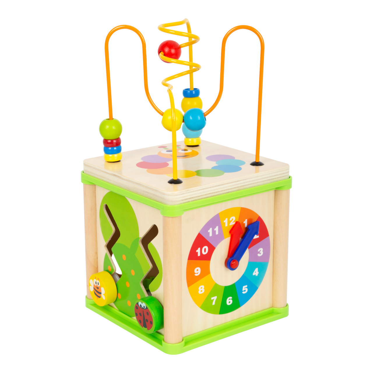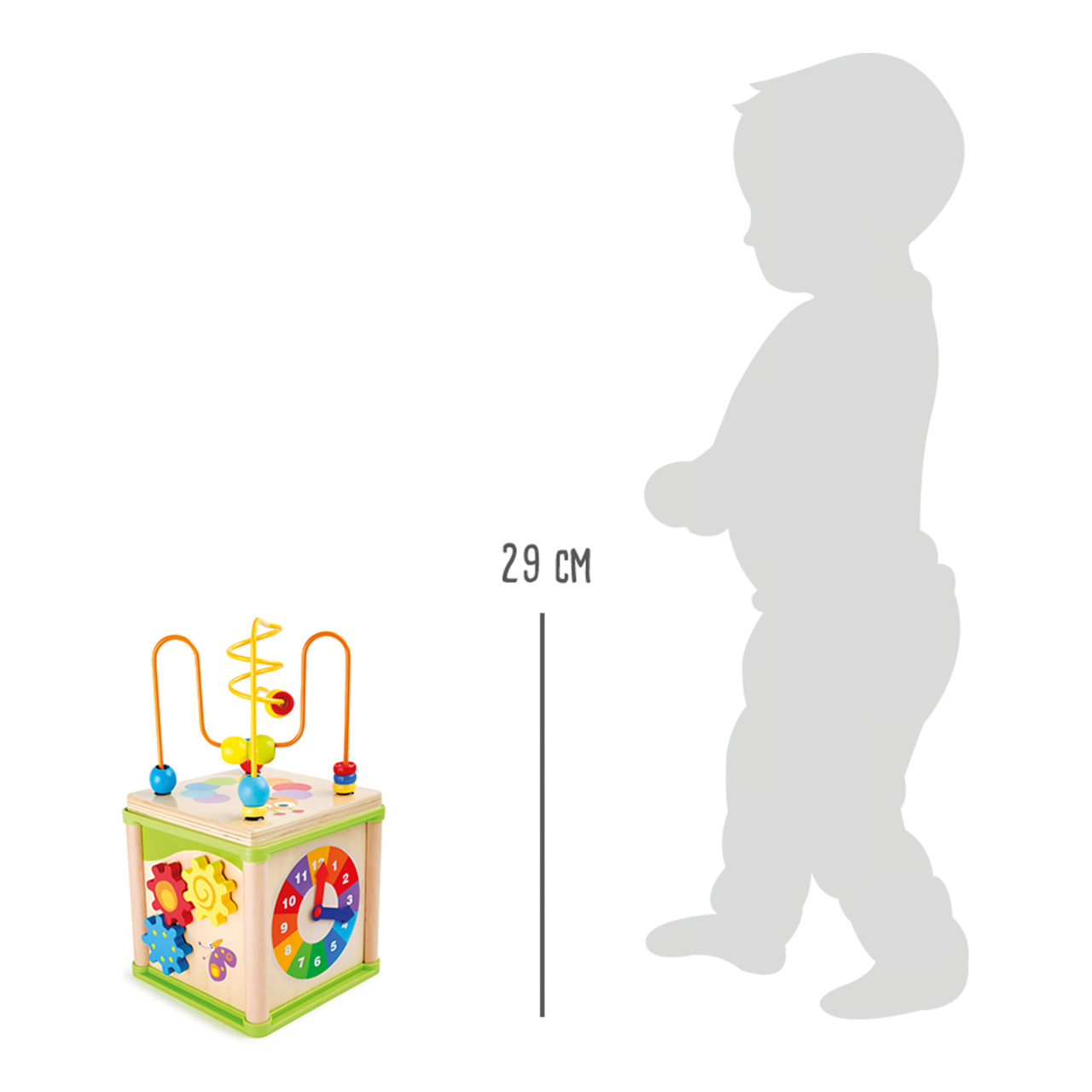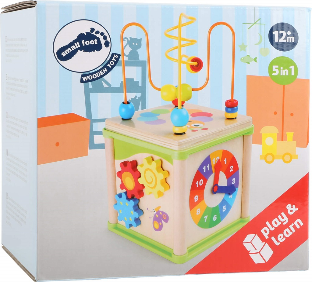 Pokud nemáte ve své herně mnoho místa a není v ní prostor na hraní, je tato multifunkční motorická kostka ideální. S oddělitelným labyrintem, ozubenými kolečky, hodinami a logickou hrou děti hravě trénují jemné motorické dovednosti a jejich soustředění.