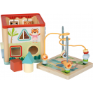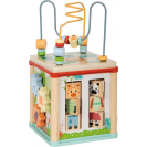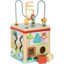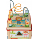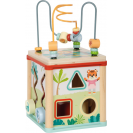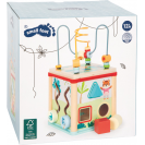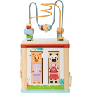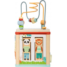 Pokud nemáte v dětském pokojíčku dostatek prostoru, je tato multifunkční motorická kostka ideální. Odnímatelné víko lze snadno uložit dnem vzhůru přímo uvnitř kostky, což šetří místo. Děti si mohou hrát s korálkovým bludištěm, skládáním tvarů, ozubeným kolem, posuvným bludištěm i otáčecími dlaždicemi. Tato hračka nabízí nepřeberné množství možností zábavy: korálkový labyrint, ozubená kolečka, vkládání tvarů, otočné kostičky s obrázky zvířátek a další. Díky příjemným barvám, roztomilým zvířátkům i dřevěnému materiálu se tato zábavná a naučná kostka stane jistě oblíbenou hračkou Vašich dětí a také pěkným doplňkem do dětského pokojíčku.