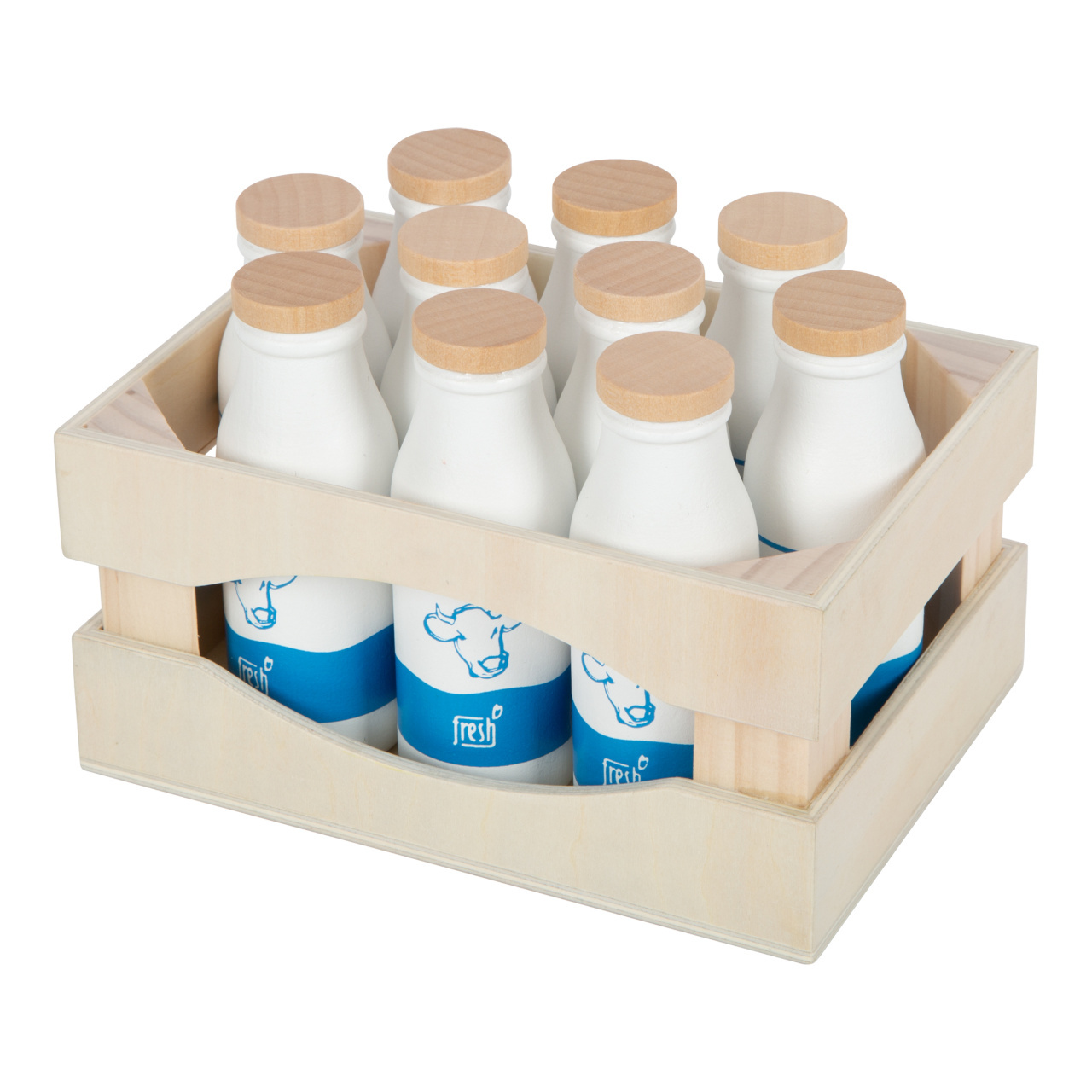 Co by to byl za dětský prodejní stánek bez mléka? Do robustní přepravky se vejde 10 lahví mléka, hračka je perfektní pro realistickou hru v kuchyňce nebo při prodeji. Díky jednoduchým ilustracím jí lehce porozumí i nejmladší děti.