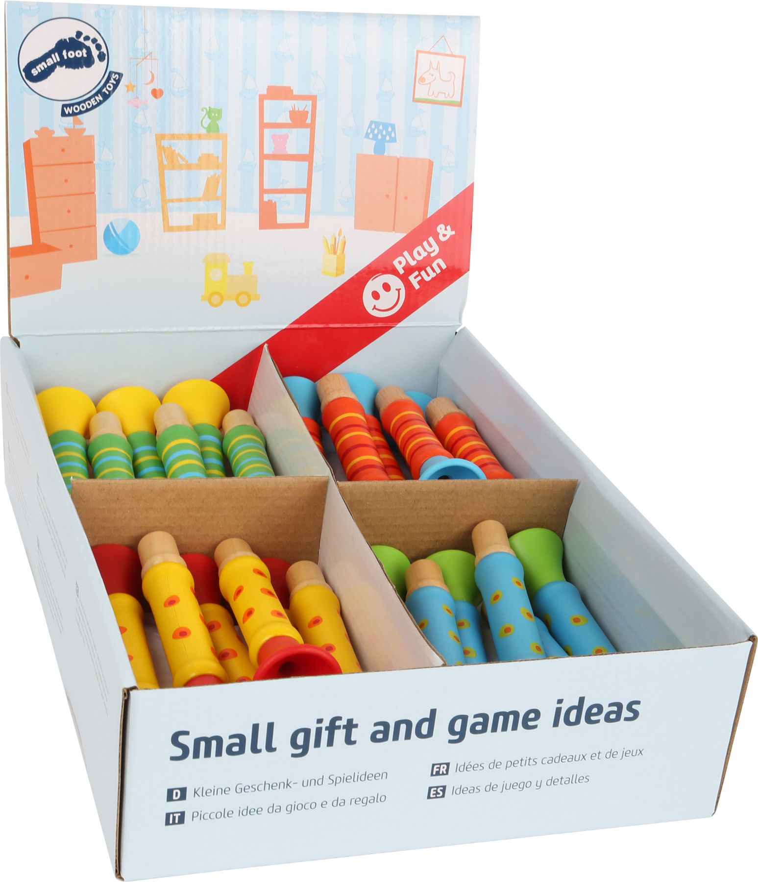 Je čas zazářit na pódiu! Tahle hravě zbarvená dřevěná trumpetka je nejenom pro oči atraktivním kouskem, ale také skvělým nástrojem pro malé objevitele. Zaručuje spousty hodin zábavy a je vhodným dárkem pro vaše začínající muzikanty! Kdy bude náš první koncert?