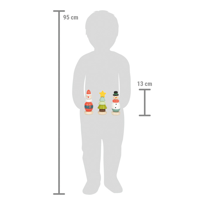 Zábavná skládací hra s vánoční tématikou. Se sněhulákem, vánočním stromečkem a Santa Clausem bude skládání během adventního období ještě kouzelnější. Tyto dřevěné vánoční figurky se skládají z 5 barevných dílků, které se snadno zasouvají a skládají na sebe. Každá figurka je vyrobena z kvalitního dřeva a zdobena veselým, přátelským motivem. Všechny figurky září vánoční atmosférou a přinesou do každého domova radost a kouzlo Vánoc. Díky robustnímu a odolnému provedení perfektně padnou do dětských ručiček a zaručí dlouhotrvající zábavu při hraní. Při hře děti procvičují koordinaci ruka-oko, rozvíjejí motoriku, soustředění a učí se poznávat velikosti a tvary – a to vše zábavnou formou. Jsou to nejen vzdělávací hračky, ale i krásné vánoční dekorace nebo malé dárky do adventního kalendáře. Ideální pro hraní, učení i zdobení.