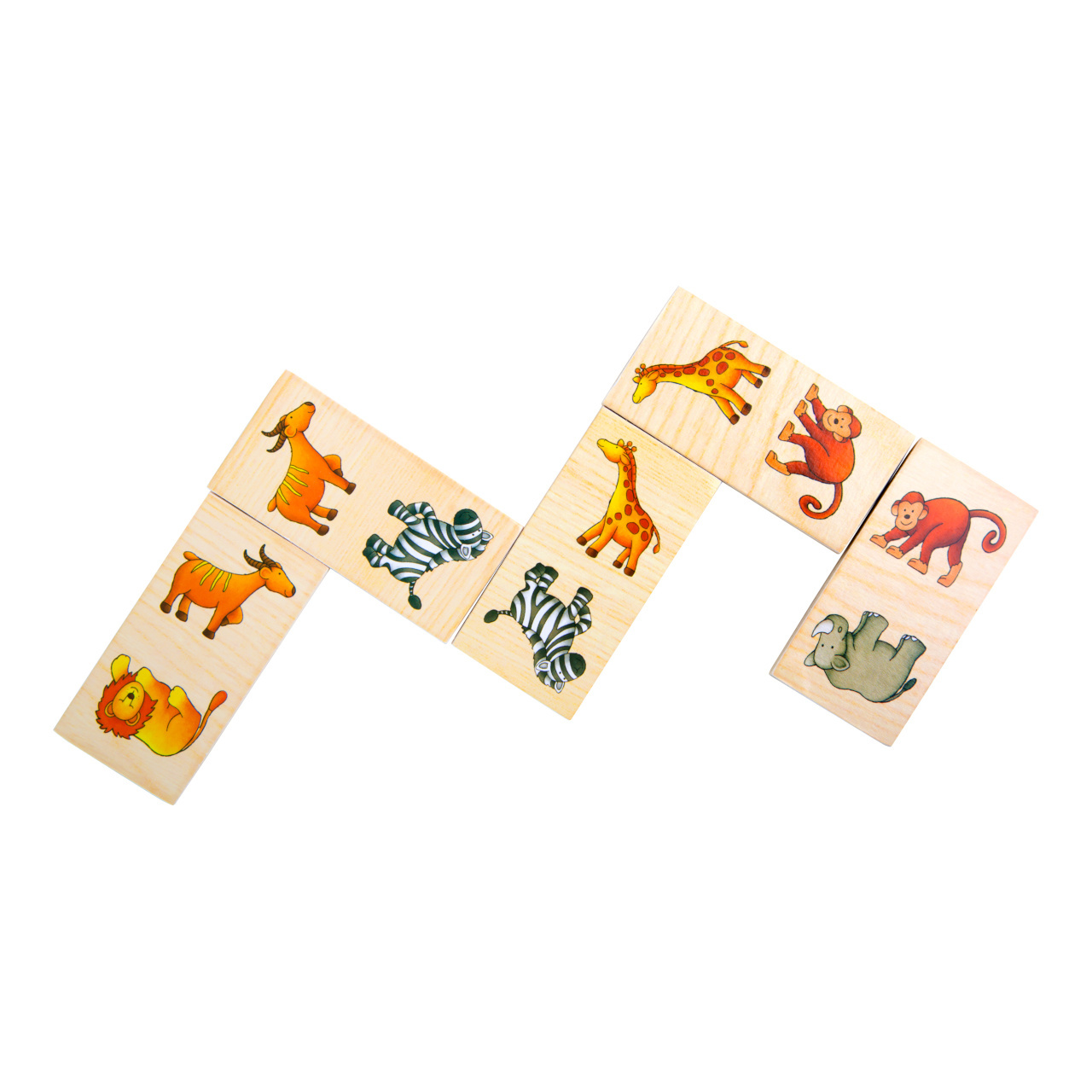 Nechť hra začne! Toto domino je vyrobeno ze 100% certifikovaného FSC® dřeva. Velké kostky se zvířaty safari. Dílky lze jednoduše uložit do dřevěného boxu.