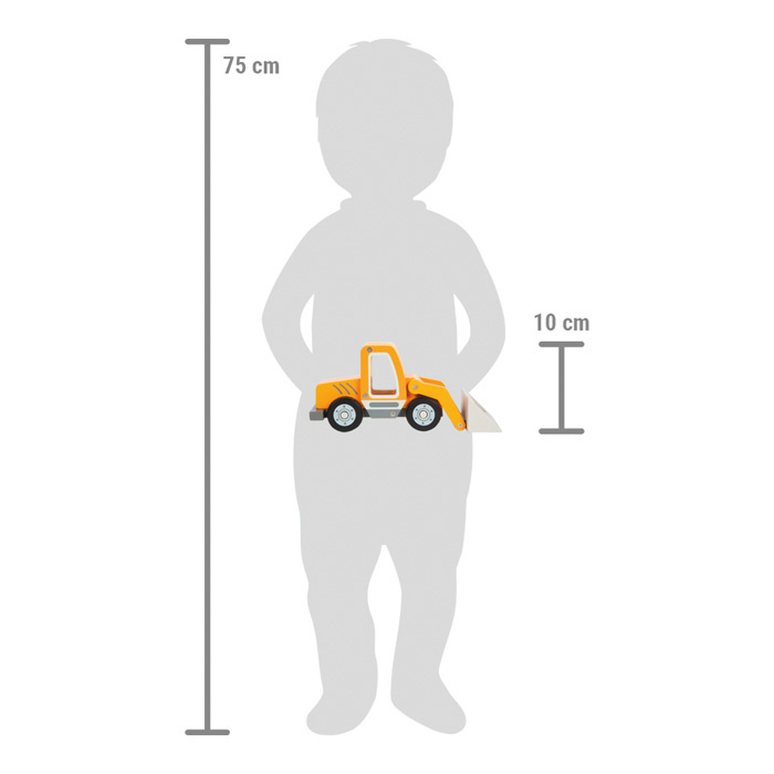 Zvedání a přemísťování břemen v dětském pokoji? Ano, je to možné, díky pohyblivému ramenu lopaty. Stroj vhodný pro malé stavební dělníky. Díky zaobleným hranám a okenním otvorům jej mohou malé dětské ručičky snadno uchopit a pohybovat s ním. Pogumované pneumatiky navíc zajišťují tichý pohyb. Tento nakladač nesmí chybět v žádném vozovém parku!