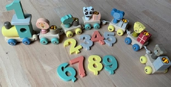 Balení obsahuje: 6 zvířátek, 6 vagónků, lokomotiva s čísly od 1 do 9