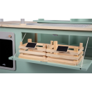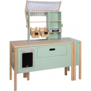 Kuchyňka/obchod obsahuje: 1 skenovací oblast s displejem, 1 kohoutek, 1 kávovar, 1 dřez/pokladna, 1 gril/sporák/pokladní pás, 1 trouba/lednička, 2 prodejní košíky s cenovkami, 1 nástěnka s nabídkami, 1 odnímatelná markíza.