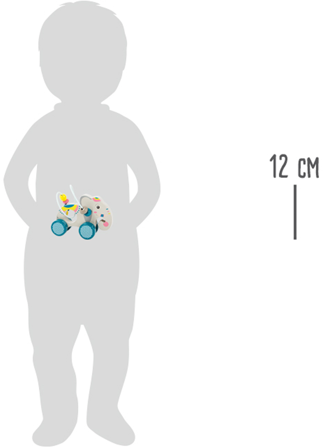 Tento pestrobarevný slon je vyroben ze 100% FSC® dřeva a děti si při hraní s ním procvičí motoriku. Barevné korálky na drátku jsou také pěkným doplňkem. Díky kolečkům mohou děti slona dopravit kamkoliv chtějí.