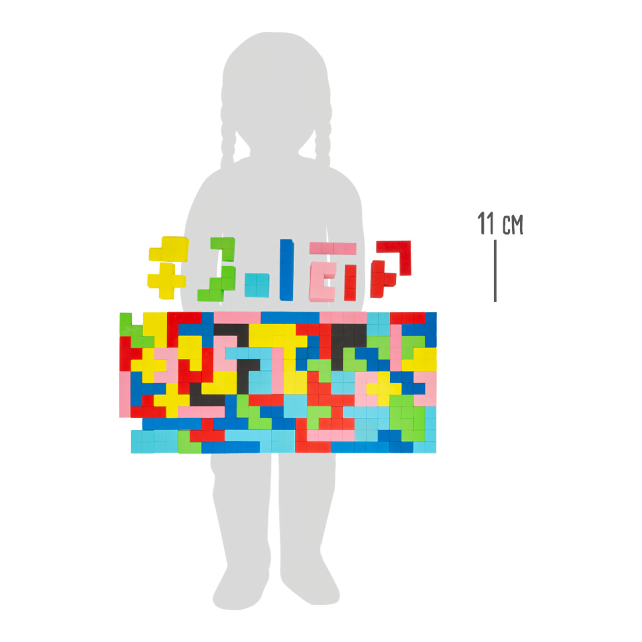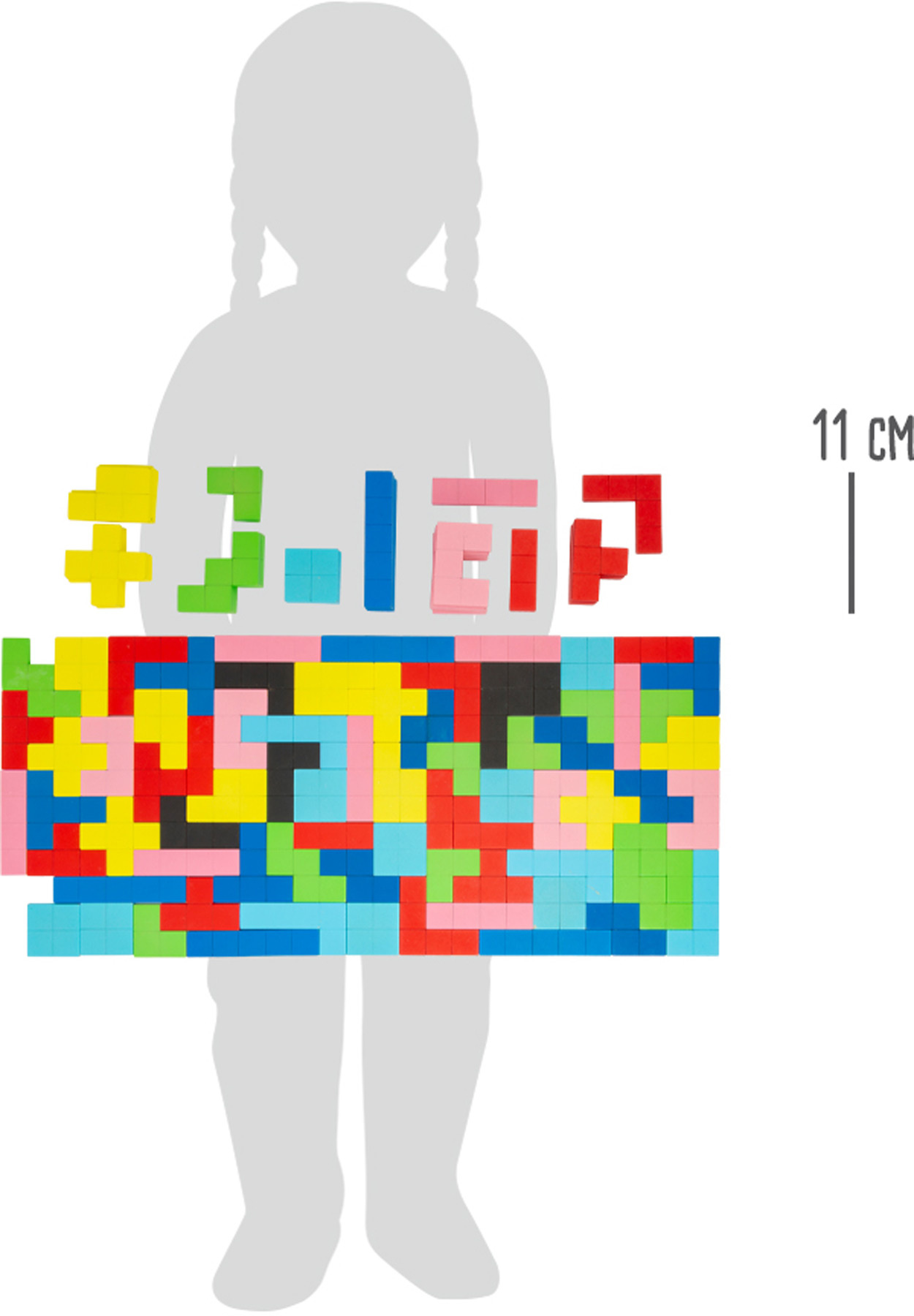 Tato 114 dílná dřevěná hra nabízí nekonečné možnosti hraní. Inspirováno světově známou klasickou počítačovou hrou, cílem je poskládat různé geometrické tvary. Z dílků skládačky lze vytvořit barevné a individuální mozaiky v nesčetných kombinacích. Tato hra podporuje motorické dovednosti a podporuje kreativitu a fantazii. Kromě toho také trénuje rozpoznávání barev a tvarů. Dílky jsou vyrobeny z odolné překližky a ošetřeny nezávadnými barvami. Dodáváno v kufříkové kartonové krabičce, s pomocí které mozaiku hravě uklidíte a snadno přenesete.