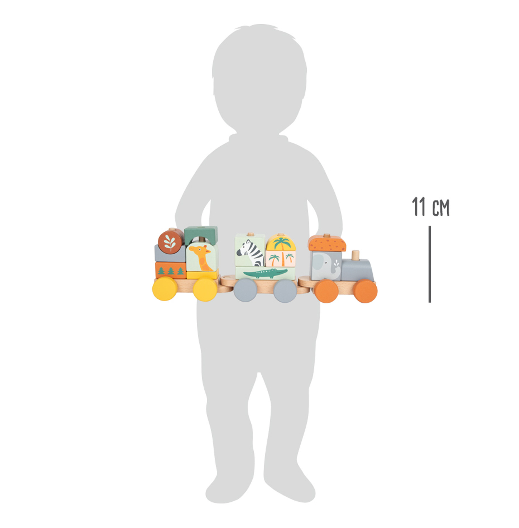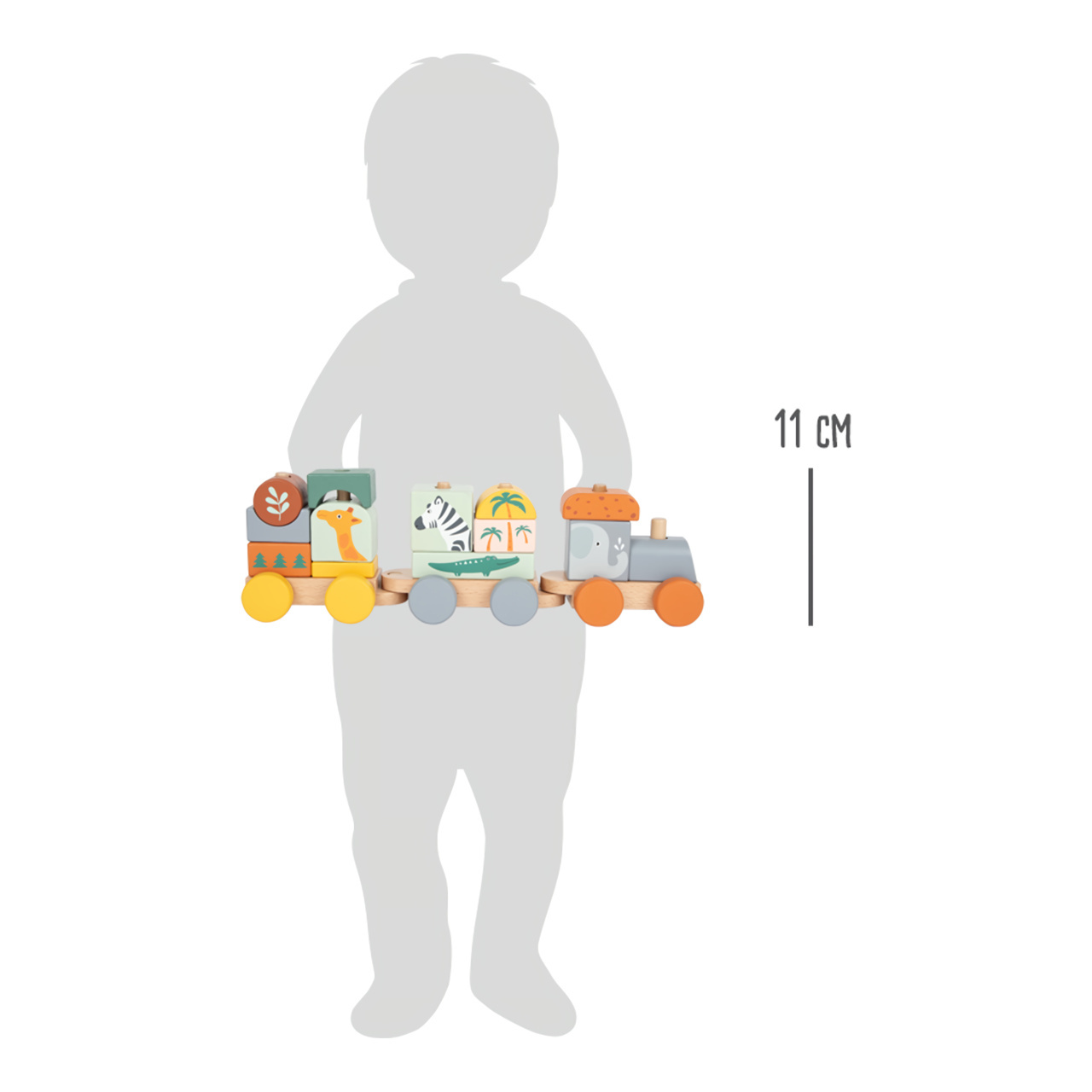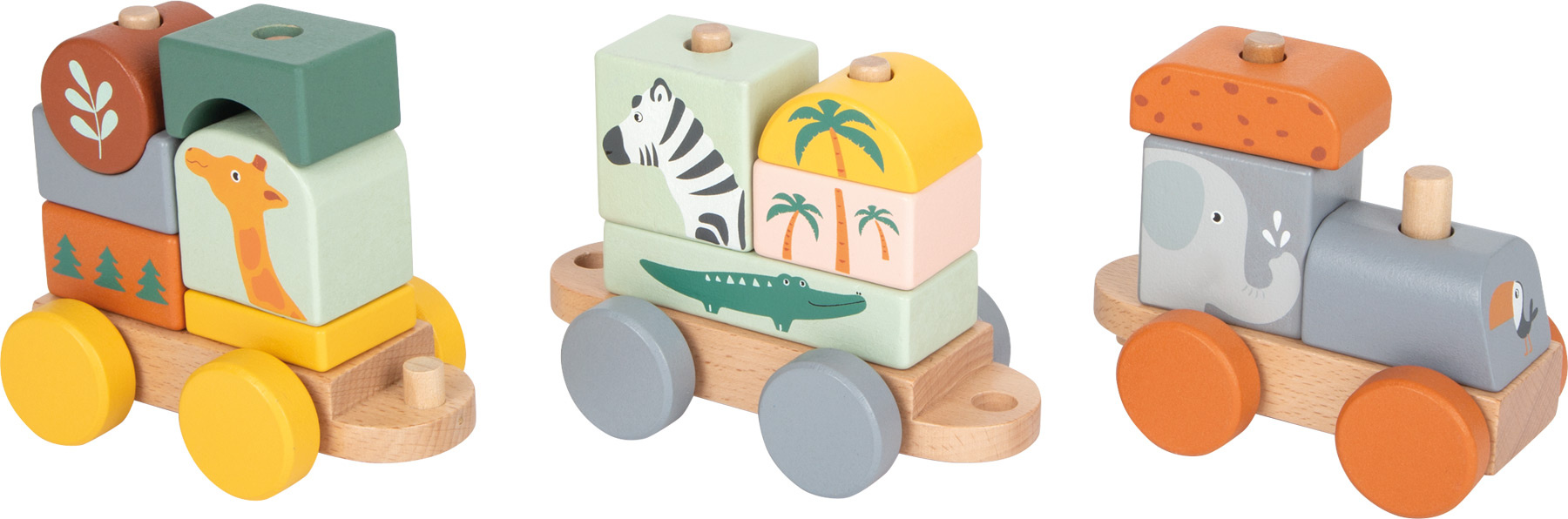 Složte jej a vyražte ze stanice! Tento dřevěný vláček v trendy barvách se rozjede až po nastoupení všech pasažérů – zebry, slona, žirafy a krokodýla. Vláček s mnoha detaily je zároveň nasazovací hračkou, která dává dětem volnost při skládání – každá kostka pasuje na více míst. Příští zastávka: Safari!