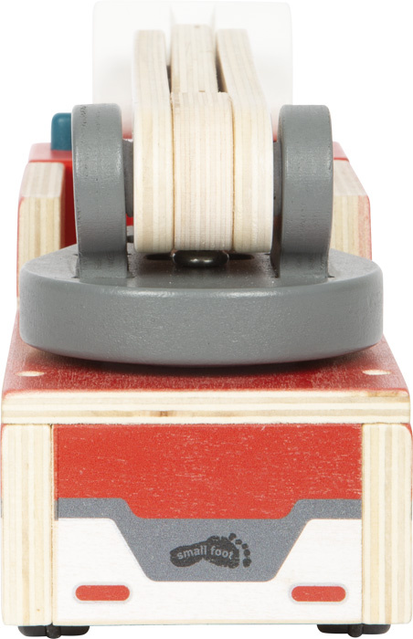 Perfektní dopravní prostředek pro malé hasiče! Hasičský žebřík se otáčí o 360 stupňů. Stroj je vhodný k ranému hraní si na hasiče. Díky zaobleným hranám a okenním otvorům jej mohou malé dětské ručičky snadno uchopit a pohybovat s ním. Pogumované pneumatiky navíc zajišťují tichý pohyb. Tento vůz s otočným žebříkem nesmí chybět v žádném vozovém parku!