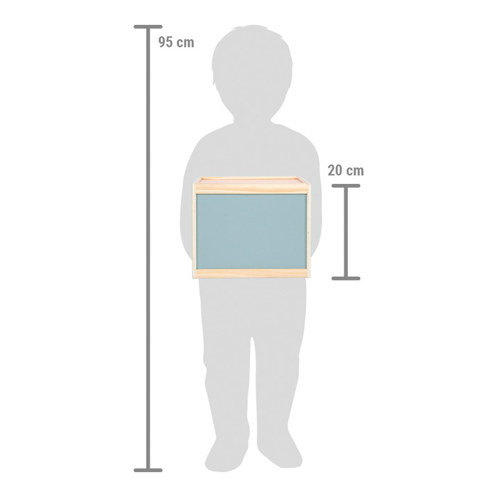 S tímto velkým boxem z produktové řady "Sensory" se dvěma bočními otvory se děti mohou uvnitř dotýkat různých předmětů. Hračka byla navržená pro podporu rozvoje smyslů a motorických dovedností. Je vhodná i pro ergoterapeutické účely. Dřevěný box lze naplnit zezadu různými předměty. Rukávy na bočních otvorech zakrývají výhled dovnitř boxu a zároveň umožňují příjemně měkký přístup. Jsou velikostí vhodné pro děti i dospělé. Vysoce kvalitní a zajímavý box v moderních barvách slibuje všestrannou a dlouhotrvající zábavu. Ať už se hraje jako paměťová hra, nebo jako hra na hledání, nebo jako hra na rozpoznávání – je to všestranná hmatová a smyslová hra, kterou lze hrát samostatně nebo s více hráči, pro ještě větší vzrušující zábavu. Rukávníky jsou připevněny pomocí suchých zipů, díky čemuž jsou odnímatelné, takže je lze prát v ruce na nízkou teplotu.
