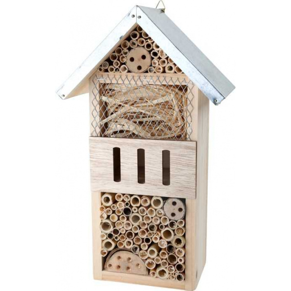 Entomologové pozor! Kdo chce pozorovat malá stvoření, rozhodně potřebujete tento domeček pro hmyz. Domek obsahuje kužele z jedle, bambusové  trubky a malé otvory. Různé druhy hmyzu si zde vytvoří dokonalý domov. Snadno zavěsitelné pomocí háku na střeše.