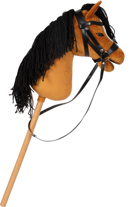Připraven na velká jezdecká dobrodružství. Tento hnědý koník na tyči Hobby Horse je ideálním společníkem pro malé milovníky koní, kteří si chtějí hrát s fantazií a zároveň se aktivně hýbat. Inspirován klasickým koníkem na tyči, ale moderně zpracován – představuje aktivní zábavu při hobby horsingu, ať už při projížďce po zahradě, tréninku skoků v obýváku nebo na turnaji v parku. Koník má měkkou látkovou hlavu, hustou a snadno upravitelnou hřívu, pevnou tyč z masivního dřeva. Součástí je ohlávka, uzda a vodítko, které dodávají hře maximální autentičnost. Otevřená tlama umožňuje realistické nasazení udidla, jako u skutečného koně. Dřevěnou tyč lze jednoduše odšroubovat, což usnadňuje skladování i přepravu na další hobby horsingová dobrodružství.