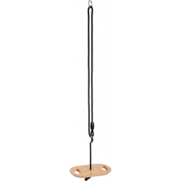 Zábava při houpání ve stoje i vsedě. Tato houpačka je absolutním poutačem doma i na zahradě. Je vyrobena z robustního masivního dřeva v kombinaci s černými lany. Lze ji používat vsedě, kde se děti mohou držet madel, ale také i ve stoje. Díky drážkám na povrchu sedáku je tato houpačka protiskluzová a bezpečná. Robustní lano je výškově nastavitelné. Kovový kroužek umožňuje houpačku rychle zavěsit i sundat. Unese až 100 kg hmotnosti a je tedy vhodná i pro dospělé. Skvělá houpačka pro vnitřní i venkovní prostory, která trénuje ovládání těla, sílu a obratnost. Kdo se dokáže rozhoupat nejvýše?