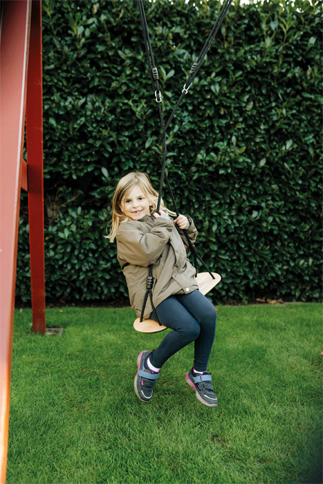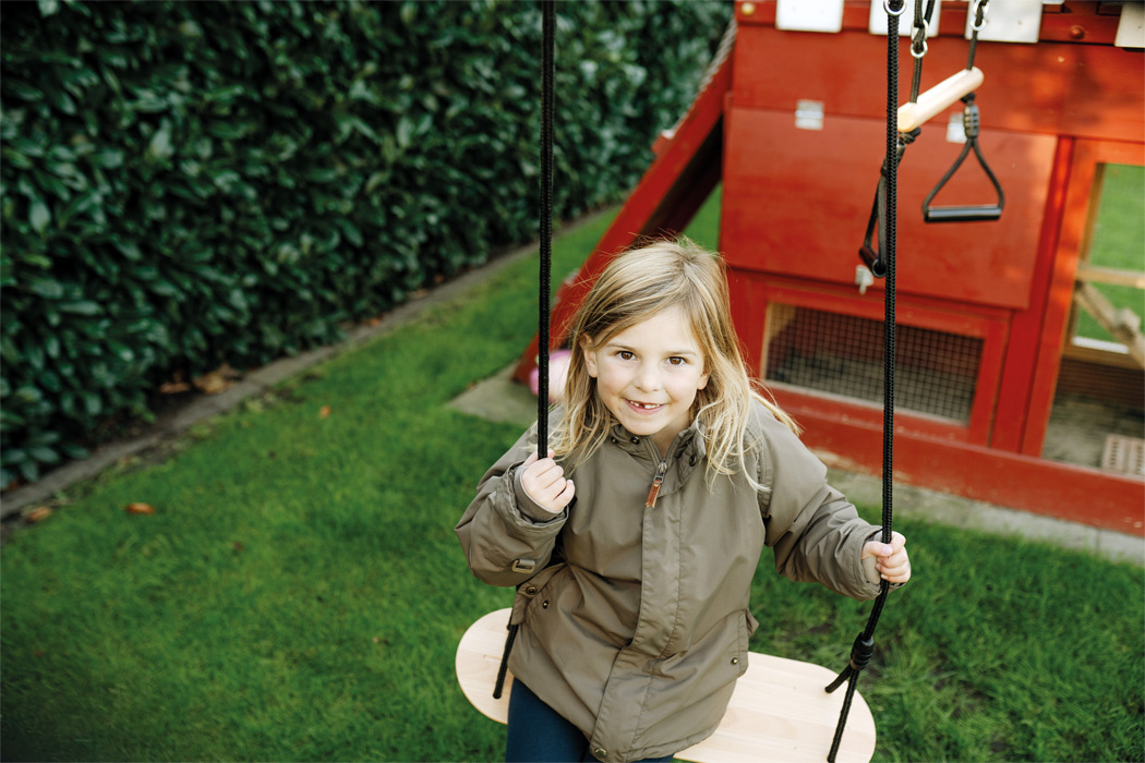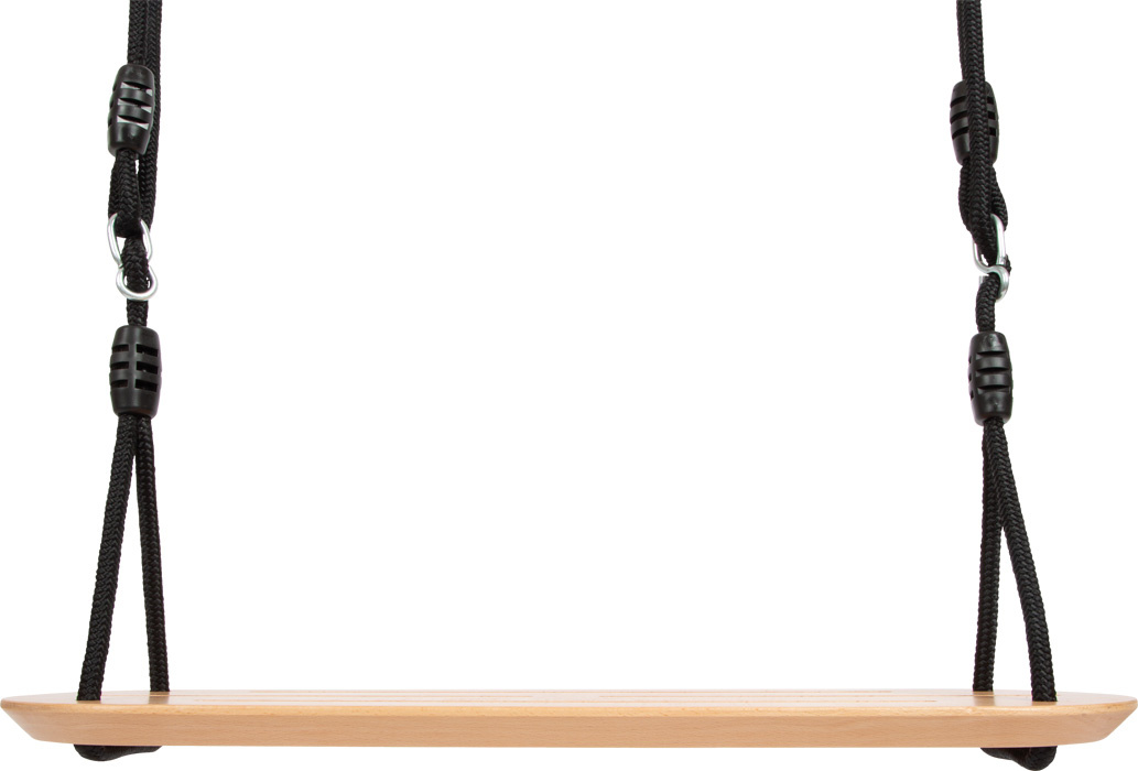 Vzlétněte vysoko do oblak. Tato prostorná houpačka ze dřeva je klasická houpačka, která vyniká kvalitním vzhledem díky přírodnímu dřevu v kombinaci s černými lany. Robustní lana jsou výškově nastavitelné. Kovový kroužek umožňuje houpačku rychle zavěsit i sundat. Je vyrobena z robustního masivního dřeva a lana z materiálu odolného vůči povětrnostním vlivům, vhodná do interiéru i exteriéru.Díky velké sedací ploše a nosnosti je ideální i pro dospělé. Trénuje ovládání těla, sílu a obratnost. Kdo se dokáže rozhoupat nejvýše? Drážky na povrchu sedáku zajišťují, že je houpačka protiskluzová a bezpečná.
