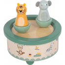 Klasická hrací skříňka s motivem Safari je vyrobena ze 100% FSC® dřeva. Její jemné barvy a roztomilé zvířátka tygra a slona spolu s příjemnou melodií "Twinkle Twinkle Little Star" upoutají pozornost každého dítěte. Díky kvalitním barvám a modernímu designu bude hrací skříňka vkusnou dekorací do dětského pokoje. Dvě dřevěné figurky tygra a slona drží na horní straně hrací skříňky pomocí magnetů a točí se do rytmu hudby. Dají se jednoduše oddělit, a tak si s nimi mohou děti pohrát i zvlášť. Tyto krásné dřevěné hračky podporují rozvoj motorických dovedností, rozvíjejí kreativitu a představivost a povzbuzují děti k objevování světa kolem sebe.